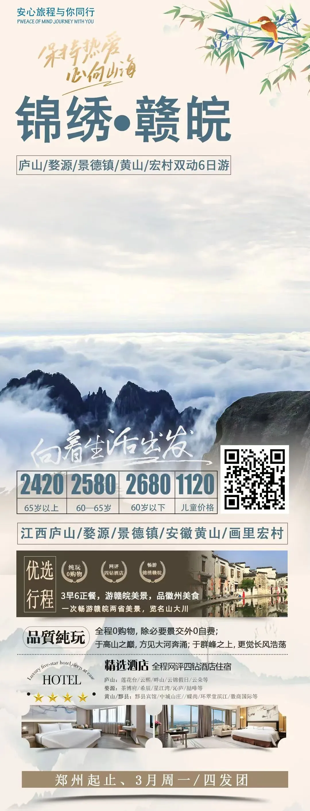 💥郑州起止,高铁直达黄山,3/4月天天发团