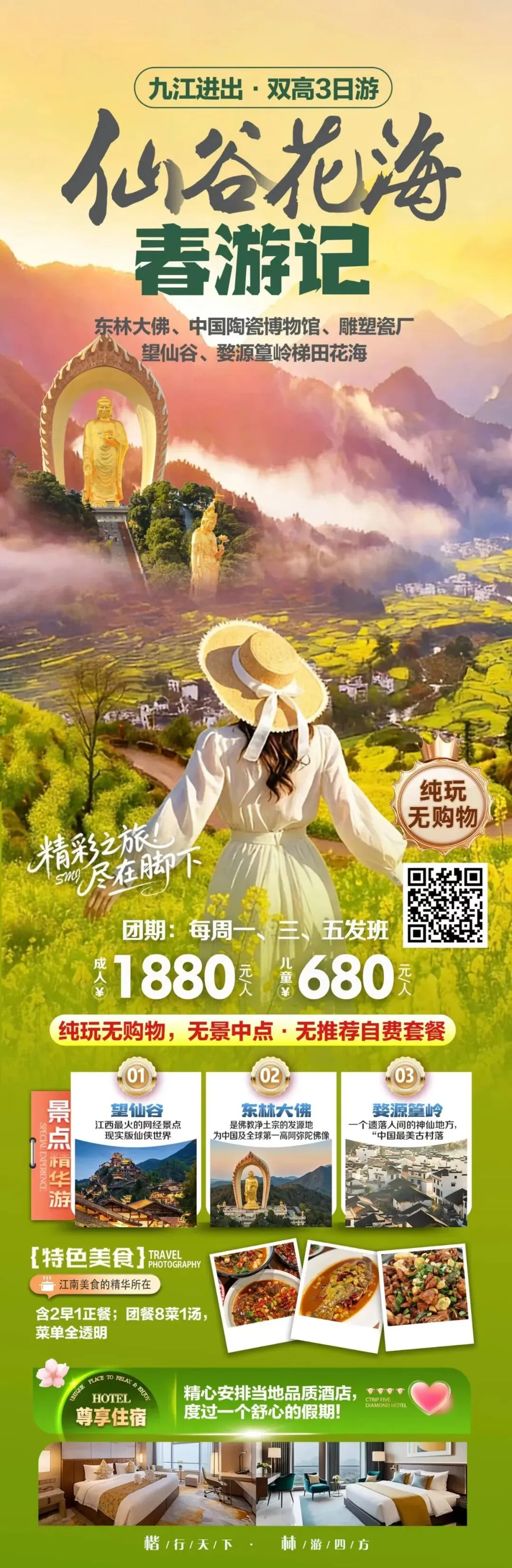 [礼物]美景:东林大佛、中国陶瓷博物馆、雕塑瓷厂、望仙谷、婺源篁岭梯田花海