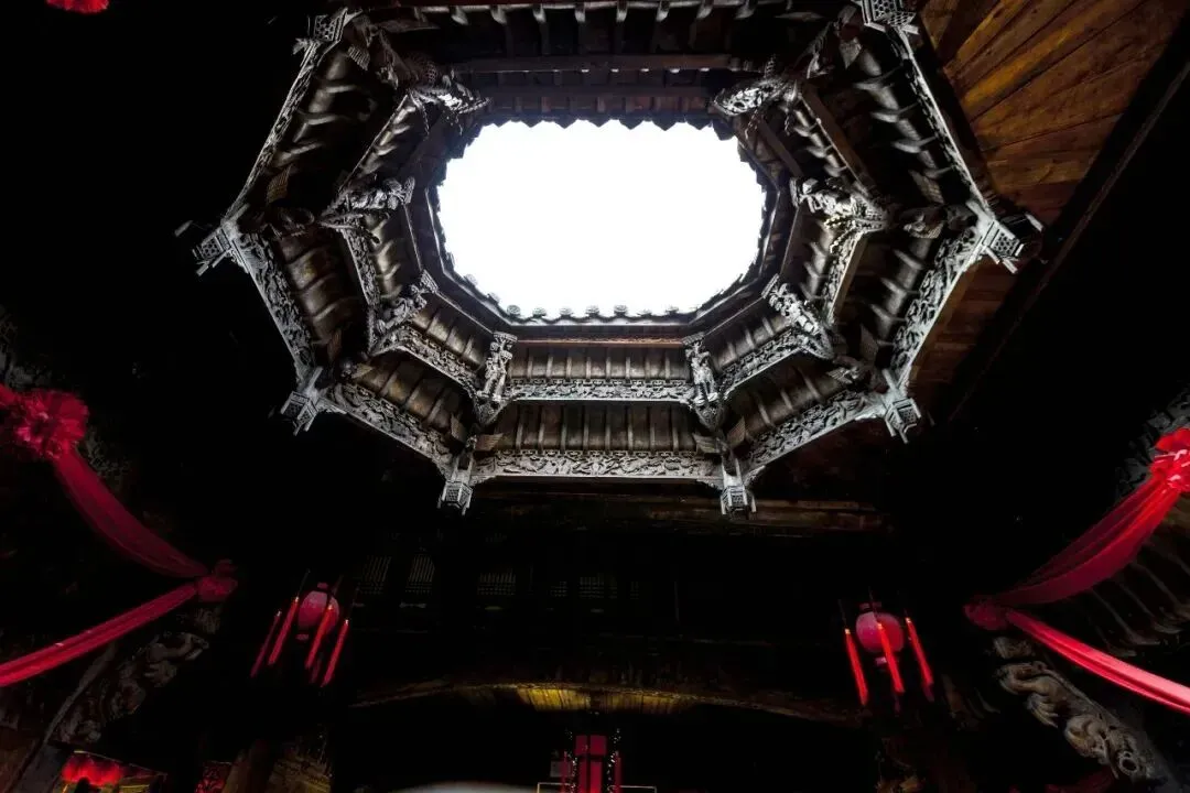 凤娃古寨的徽派建筑群,马头墙高高扬起,木雕石刻全是故事。