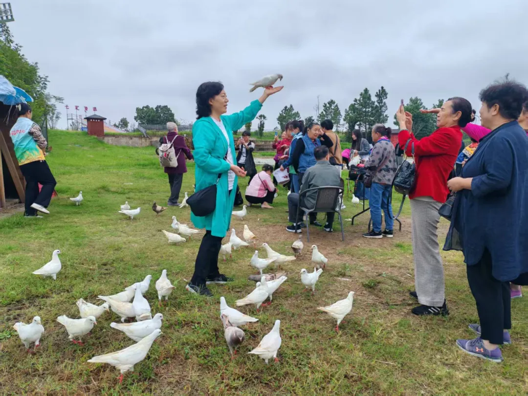 草坪上,鸽子们正等着和你互动。抓一把鸽粮,伸出手,鸽子就扑棱棱飞过来,落在手心、肩膀上,咯咯笑着拍照,这是富有春天气息的画面。