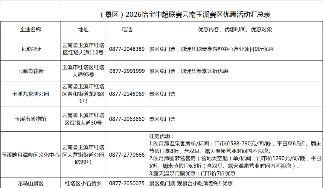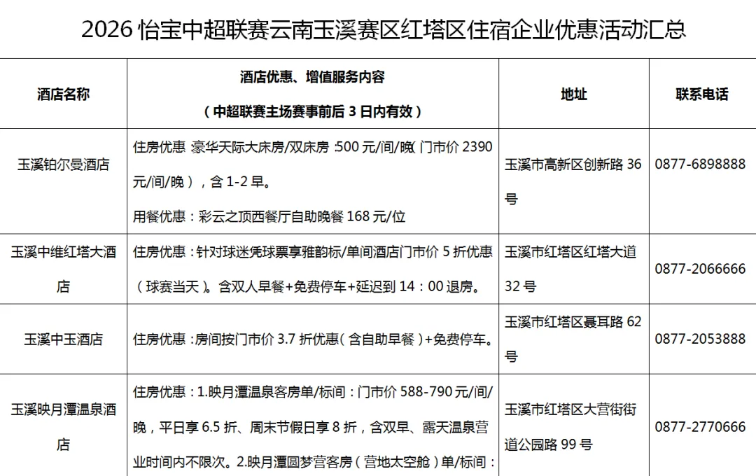 中超燃动玉溪!红塔区住宿+景区优惠上线,首个主场周末精彩活动抢先看