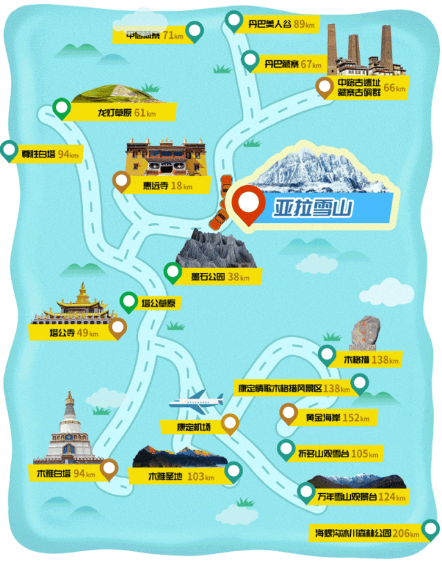 景区地址:甘孜州道孚县八美镇303省道熊猫大道,自驾导航“亚拉雪山景区游客中心”