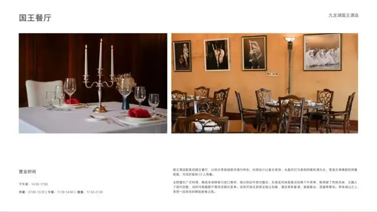九龙湖国家森林公园的怀抱中,国王酒店宛如一颗镶嵌在翡翠上的明珠。清晨,湖面薄雾缭绕,远山如黛;傍晚,夕阳为湖面镀上金色,白鹭归巢。酒店建筑与自然景观和谐共生,大面积的落地玻璃将山水画卷引入室内,无论身处客房、餐厅还是大堂,你都能与这片湖光山色保持最亲密的距离。