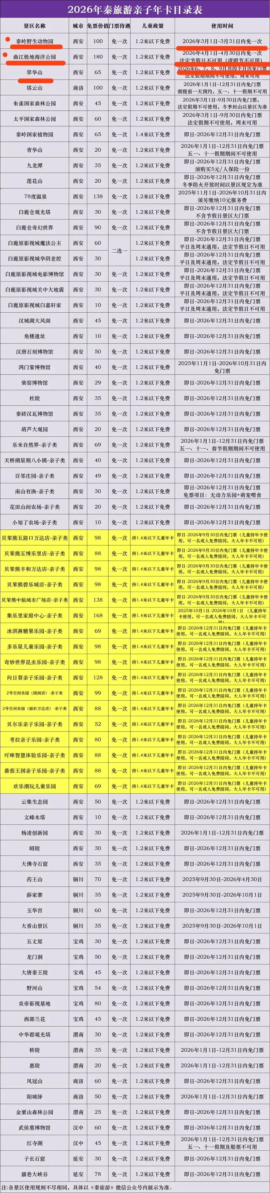 【2026秦旅游亲子年卡】¥95单人卡、¥190亲子卡!畅玩秦岭野生动物园、曲江极地海洋公园、翠华山、亲子户外、儿童乐园等60+景区~