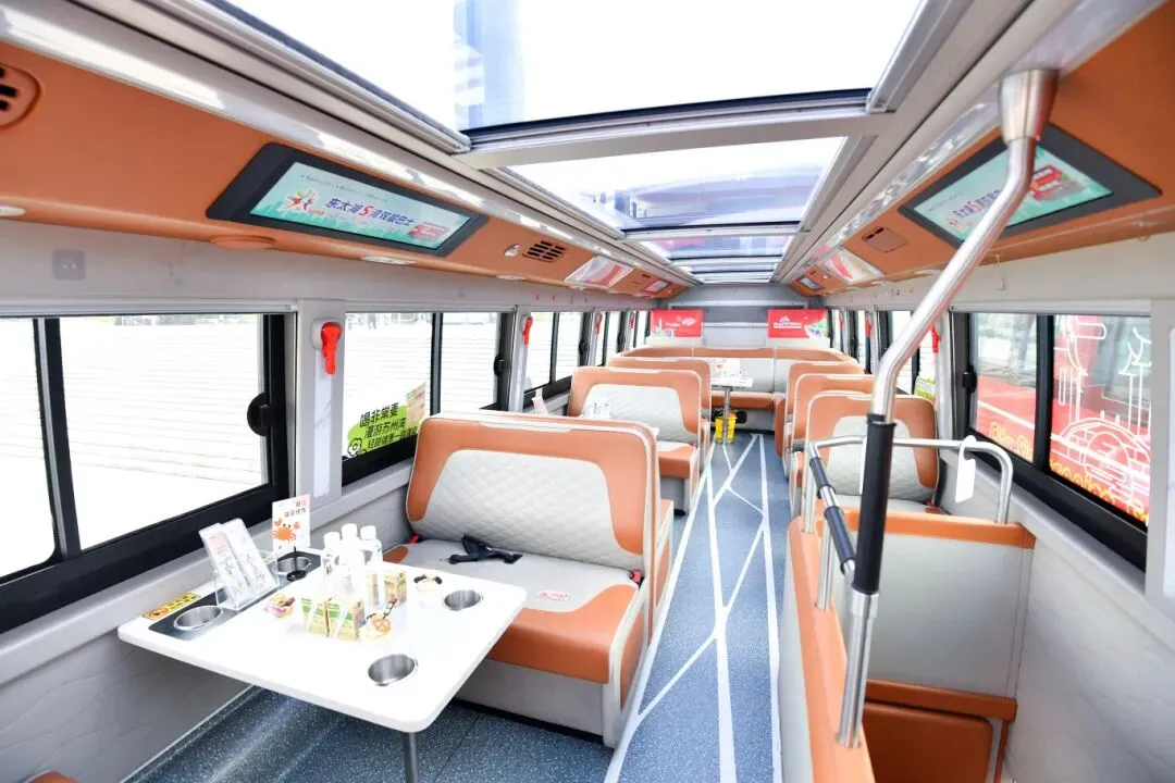 此外,专线的双层观光车型拥有180度全景视野,车厢内还引入太湖雪、金猫咖啡等吴江本土特色品牌,让市民游客将湖光岸景尽收眼底的同时,尝到吴江味道、带走吴江记忆。