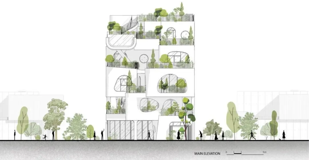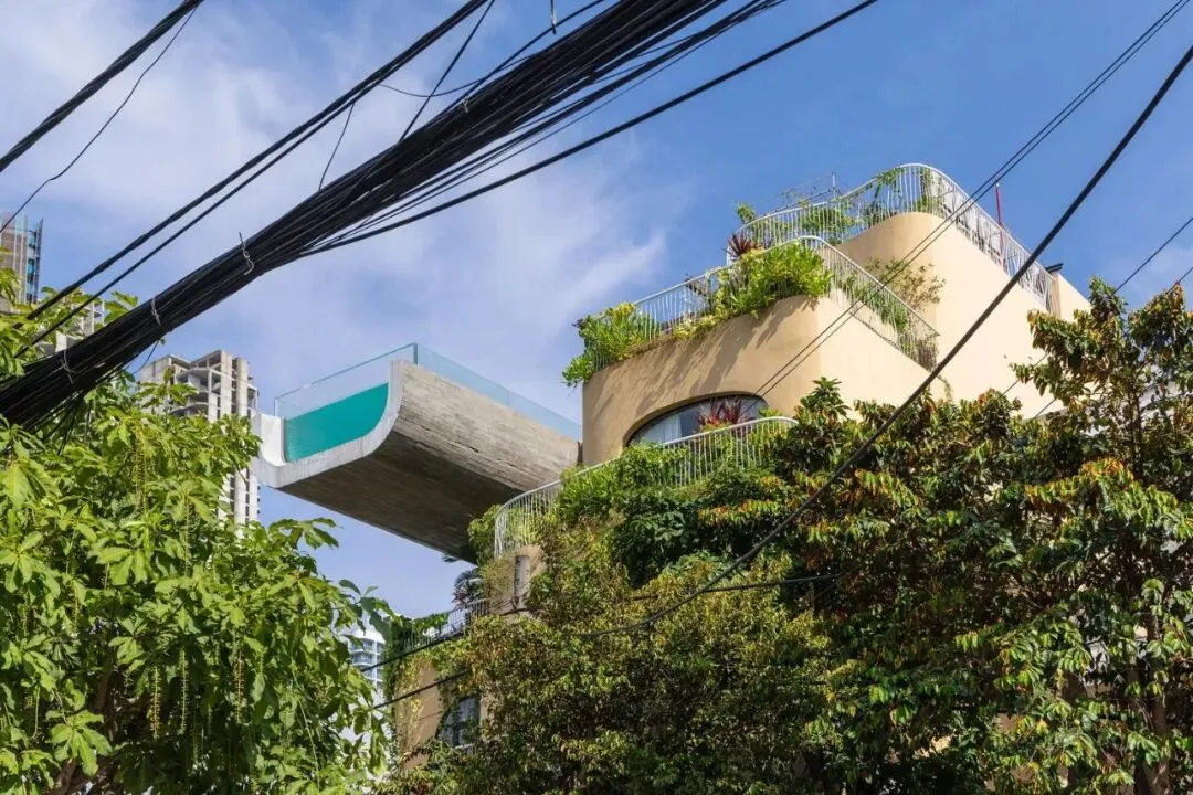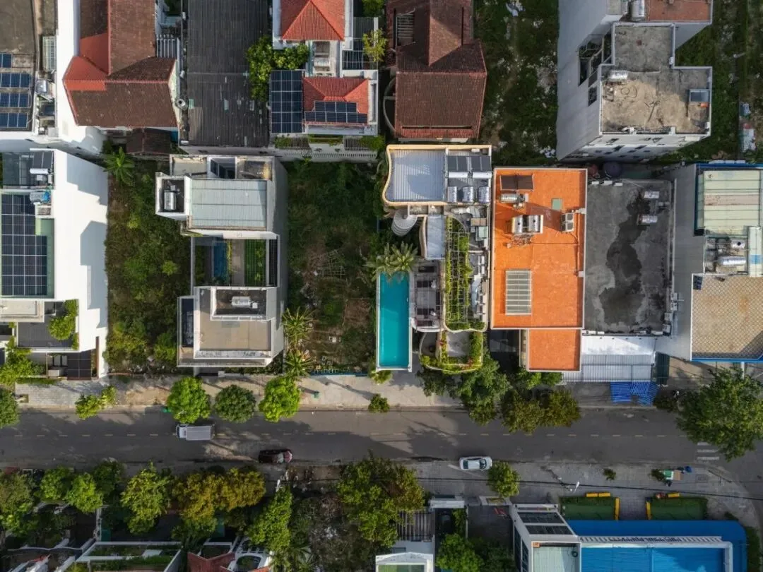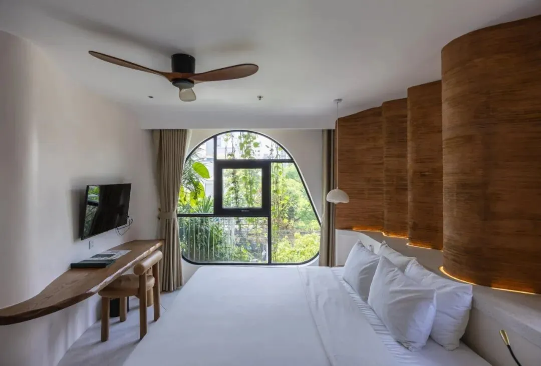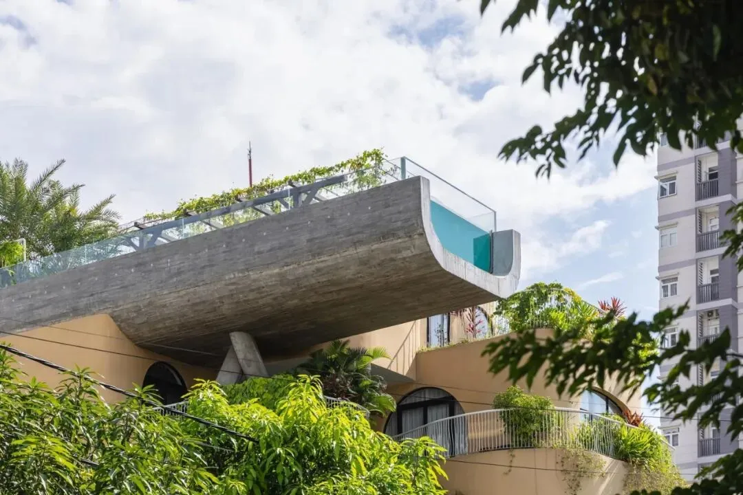 项目坐落于越南岘港主要干道之一莫里森街(Morrison Street)。在这座蓬勃发展的旅游城市快速发展的浪潮中,周边尽是玻璃幕墙的高档街区式酒店,而本项目却独辟蹊径,以一种即兴且极具艺术感的建筑语言,巧妙地发起了一场挑战。