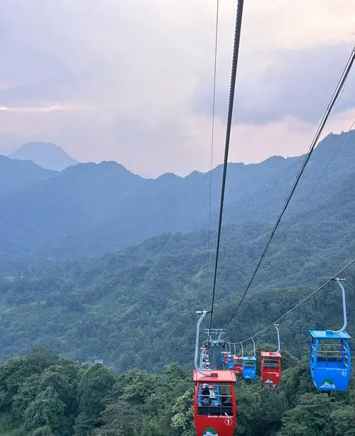 白云索道是很多人上山的选择,坐缆车上去能省不少力气,但白云索道的价值不只是代步,是在缆车上看到的风景。缆车慢慢往上走,脚下的树从近到远,山的轮廓从模糊到清晰,那种视角的变化会让你对整个青城山有一个立体的认识。特别是穿过云层的时候,那种感觉就像穿越了一个世界,一秒钟前还在雾里,一秒钟后就看到了蓝天和山峰。坐索道的时候不要只顾着拍照,要静下来感受那种慢慢上升的节奏,感受那种你和山之间距离一点点拉近的过程。