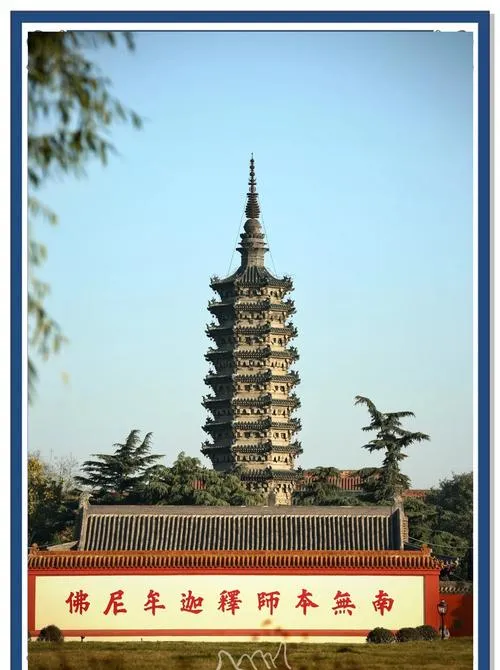 凌霄塔现在不能上去,只能在下面看,但你围着塔走一圈会发现这个塔的每一层都在微微收缩,这种收缩不是简单的线性收缩,是有曲线的,这种曲线让塔看起来有一种向上的力量感,不是靠高度压人,是靠比例和韵律吸引你的视线往上走。