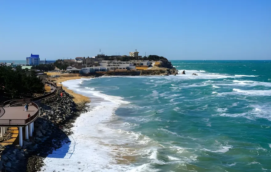 第四站:威海国际海水浴场作为中国十大优质海水浴场之一,这里沙质柔细堪比东南亚。虽然3月下不了水,但夕阳下的浴场美得像画。您可以沿着2800米的黄金海岸线散步,看帆船基地的白帆点点。晚上附近的夜市很热闹,还能放烟花。这里是免费全天开放的,推荐下午4点后去,既能看日落又能省下一顿晚饭钱。