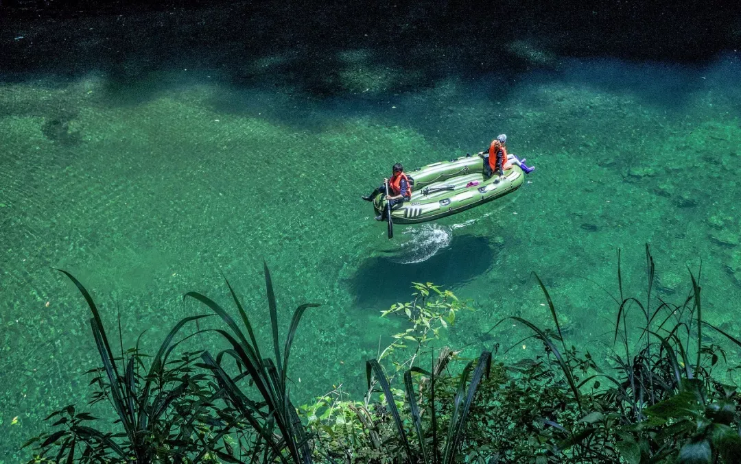 需要坐小船穿过1公里长的溶洞才能进入坝美村。与世隔绝、鸡犬相闻的场景都可以在这里看到。正因如此,人们赋予这里“世外桃源”的美誉。寨子古老而优美,高大的榕树枝繁叶茂,各种程度的绿色格外眷顾这里。