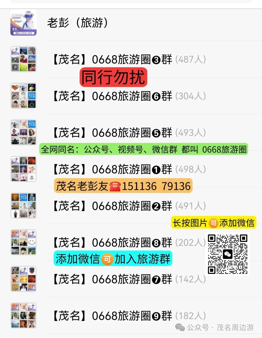 •或直接添加我的微信:15113679136(茂名老彭友),我会邀请您加入我们的旅游交流群