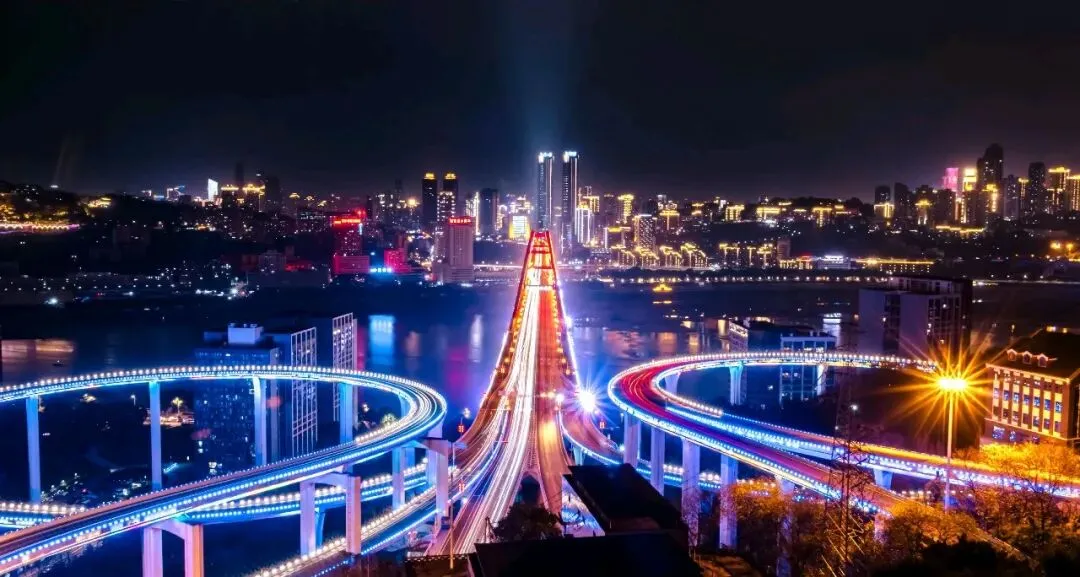 十:铜元之光天空岛:以 270° 无遮挡视角俯瞰苏家坝立交桥和城市夜景,充满赛博朋克风格,是拍摄城市大片的热门地。