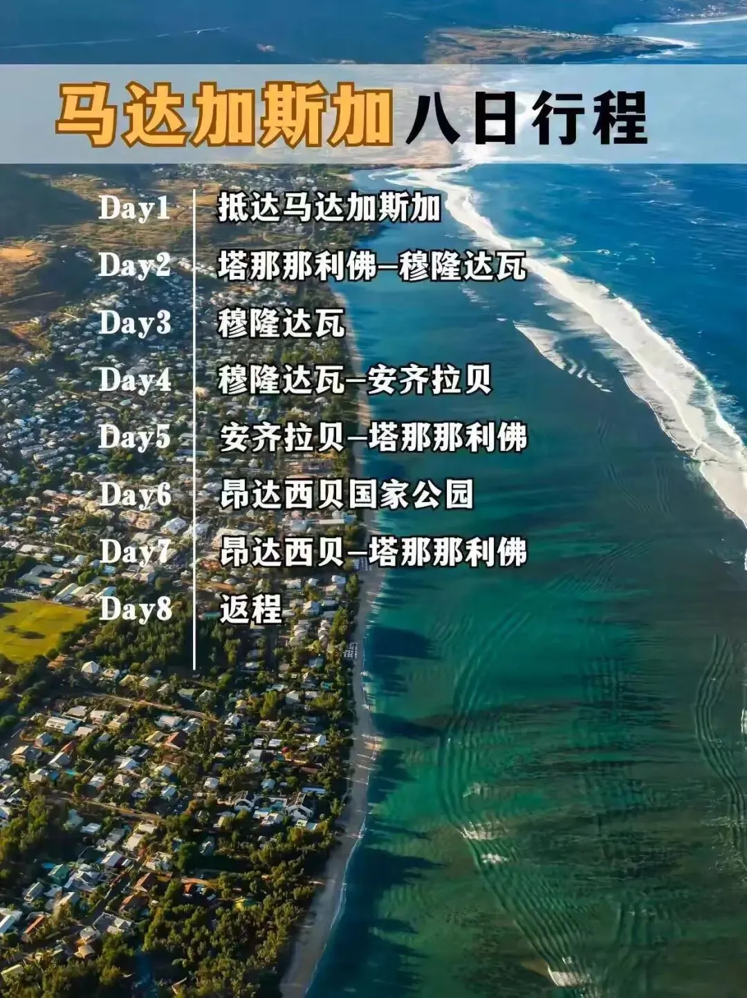 🔥最佳旅行季节:7-10月✅7-9月观鲸;10-11月看狐猴产子和蓝花楹;8-10月潜水浮潜;9-12月观鸟⭐必打卡景点:安达西贝、穆龙达瓦