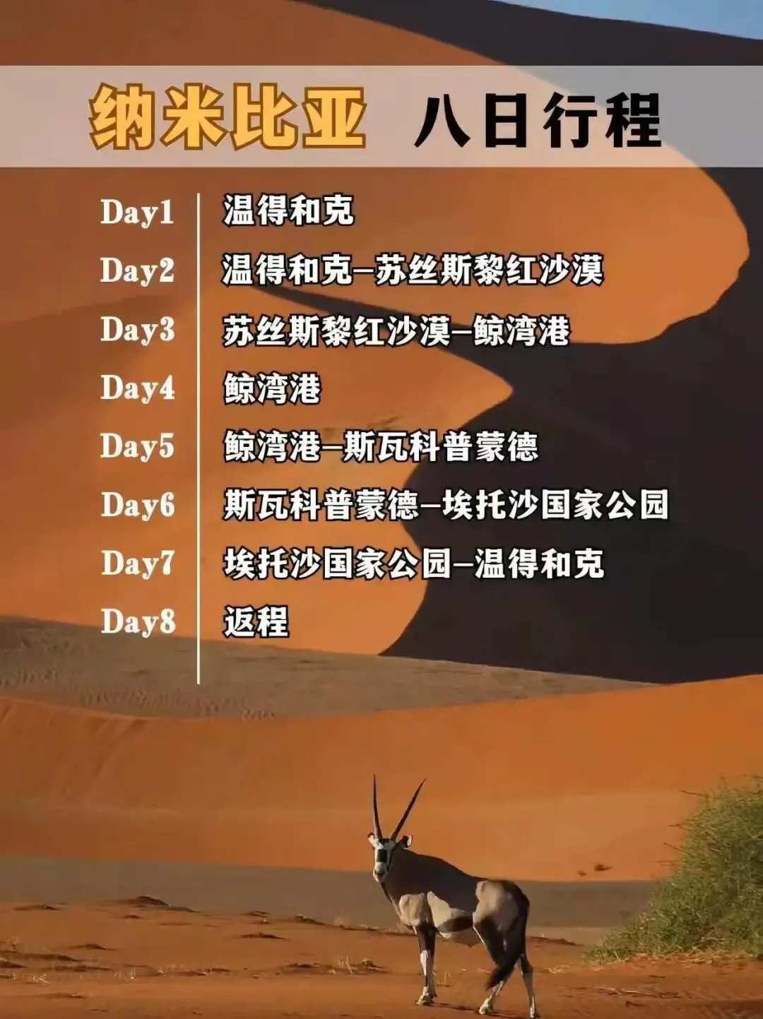 🔥全年适合旅行,7~10月旺季✅11月看火烈鸟;6-10月看动物;10月海岸观鲸⭐必打卡景点:苏丝斯黎沙漠、纳米布沙漠星空