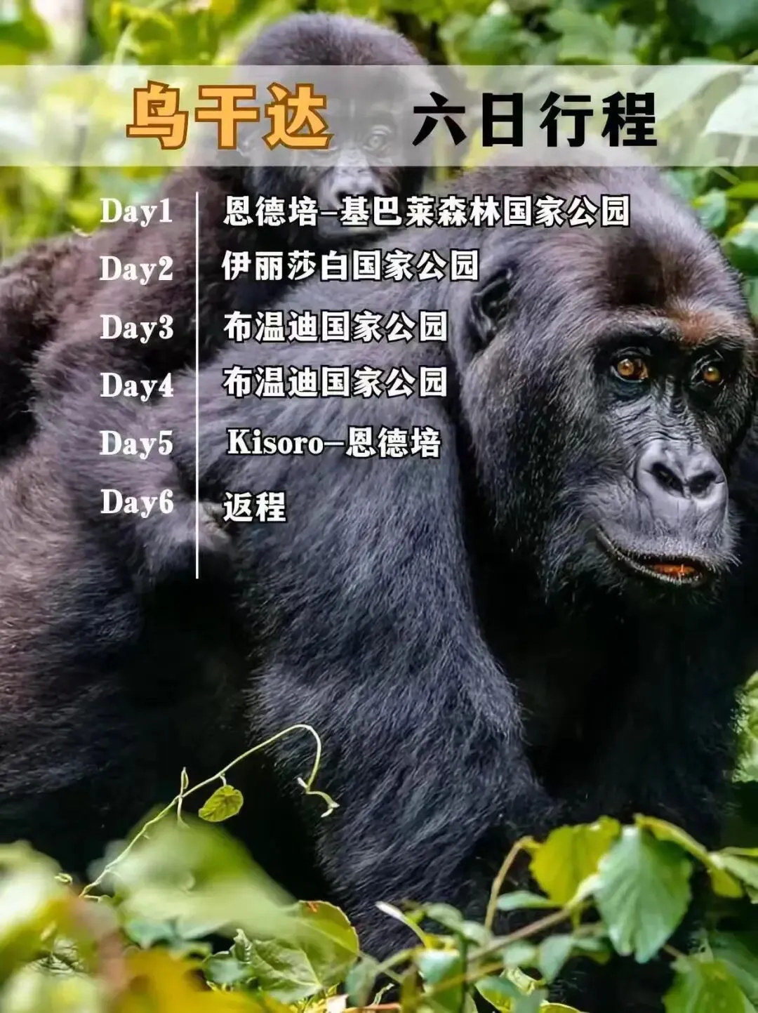 🔥最佳旅行季节:6-9月✅6-8月,12-2月徒步观赏山地大猩猩⭐必打卡景点:基巴莱国家公园、伊丽莎白女王国家公园