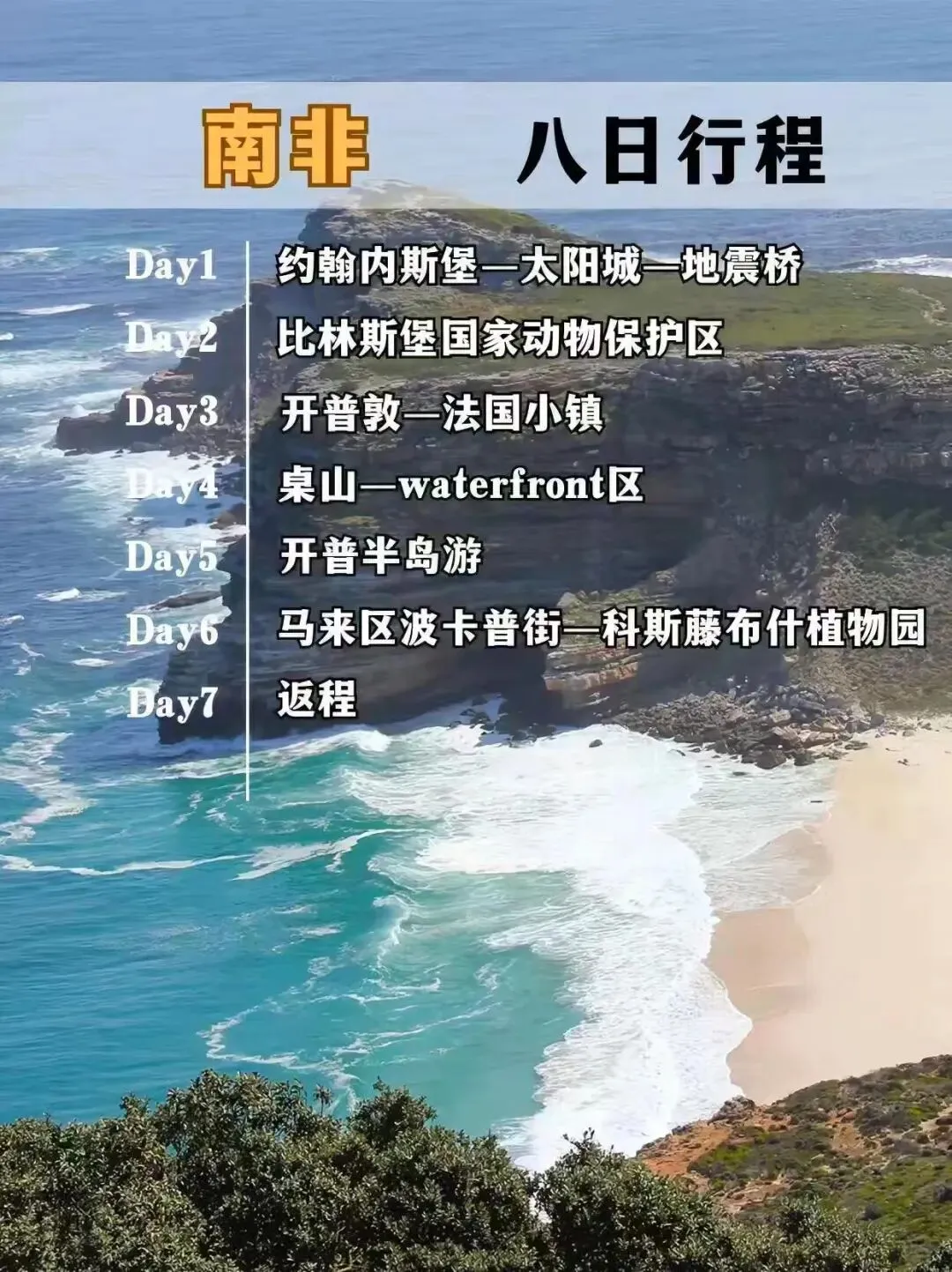 🔥最佳旅行季节:11-3月✅11-12月观鸟;10月看漫天蓝花楹;7月开普敦观鲸⭐必打卡景点:赫曼努斯、伯德尔海滩