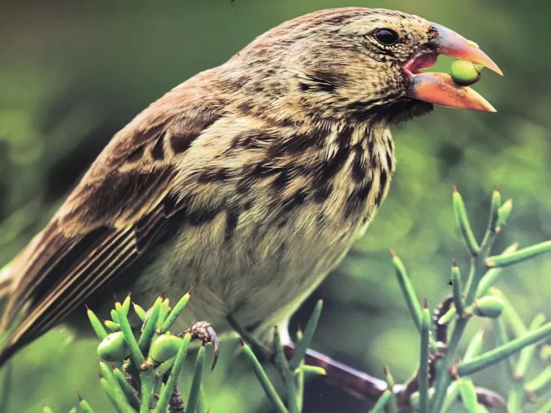 生物老师大多知道加拉帕戈斯群岛著名的“达尔文地雀”。它们共有13种(一说15种,分类尚有争议),喙部形态因食性不同而呈现显著差异,是适应性辐射的经典案例。但阿木仅在圣克鲁斯岛见到较多地雀,且因喙部差别细微难以准确辨认,只能大致判断所见以中地雀为主,偶见其他种类。