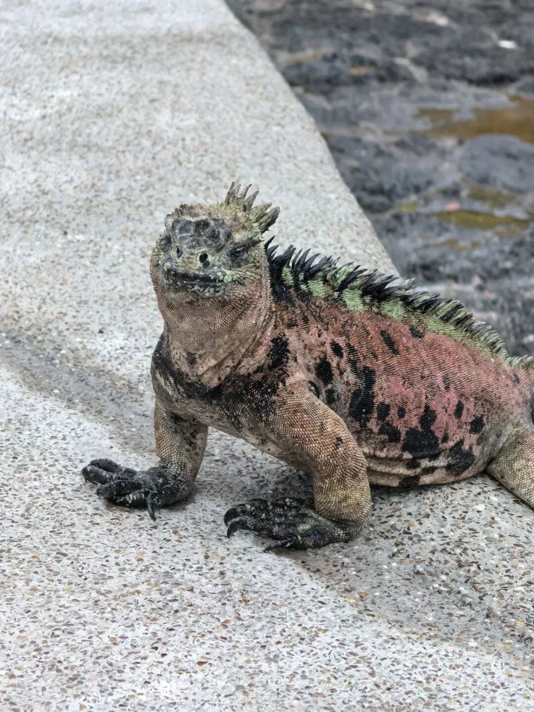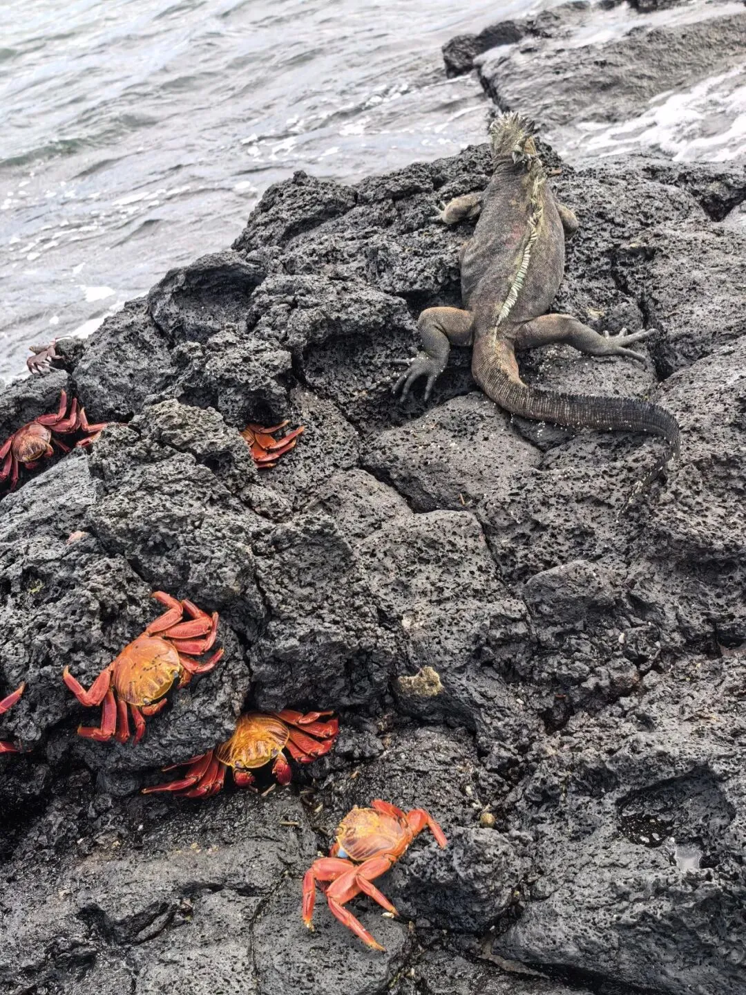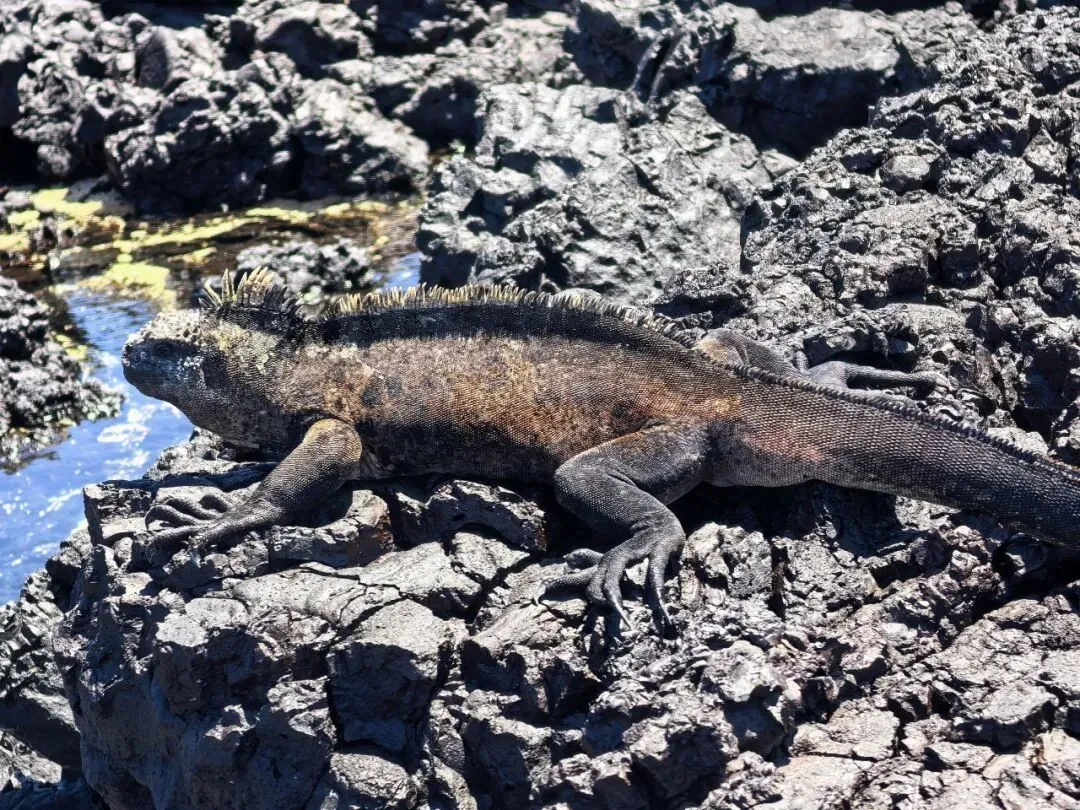 巨蜥在加拉帕戈斯群岛也随处可见。陆鬣蜥在北西摩岛相对多见,外形独特,常隐身于树荫下。海鬣蜥则更为常见,在码头附近和火山礁石区常能见到它们。有些体色与岩礁浑然一体,有些则略带红、褐等色彩。它们在陆上爬行时姿态略显笨拙,甚至有些滑稽,一旦入水却泳姿矫健,与岸上的模样判若两“蜥”。