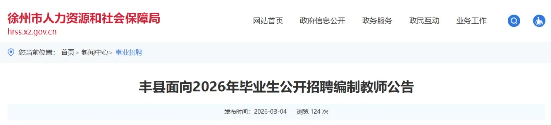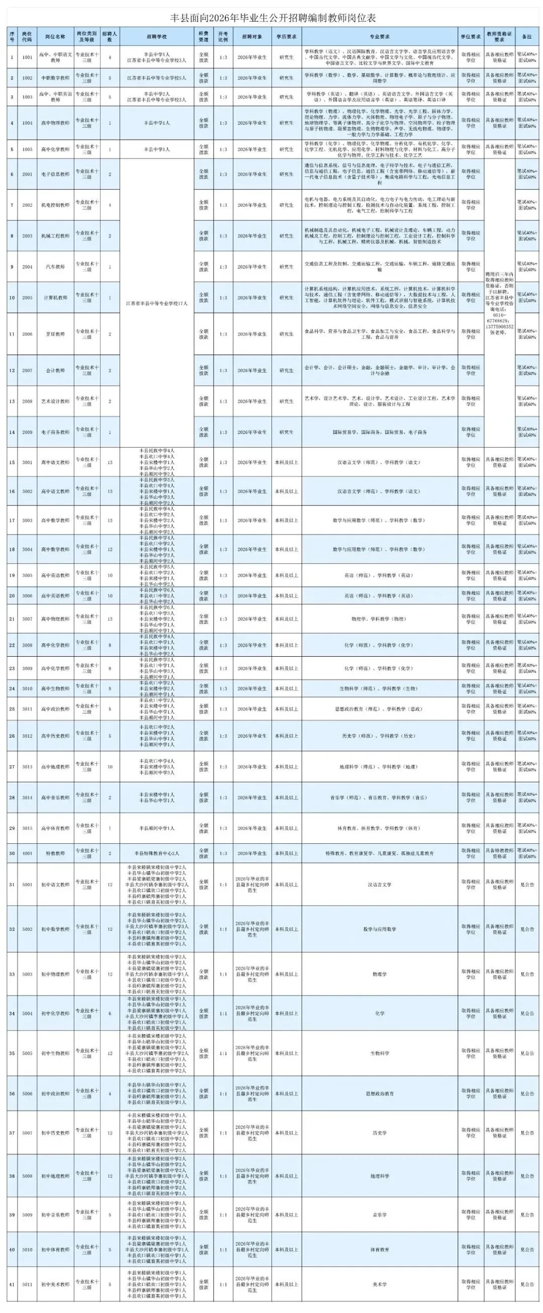 招聘对象为“2026年毕业的丰县籍乡村定向师范生”的岗位只进行笔试。其他所有岗位均采取笔试和面试相结合方式进行公开招聘。