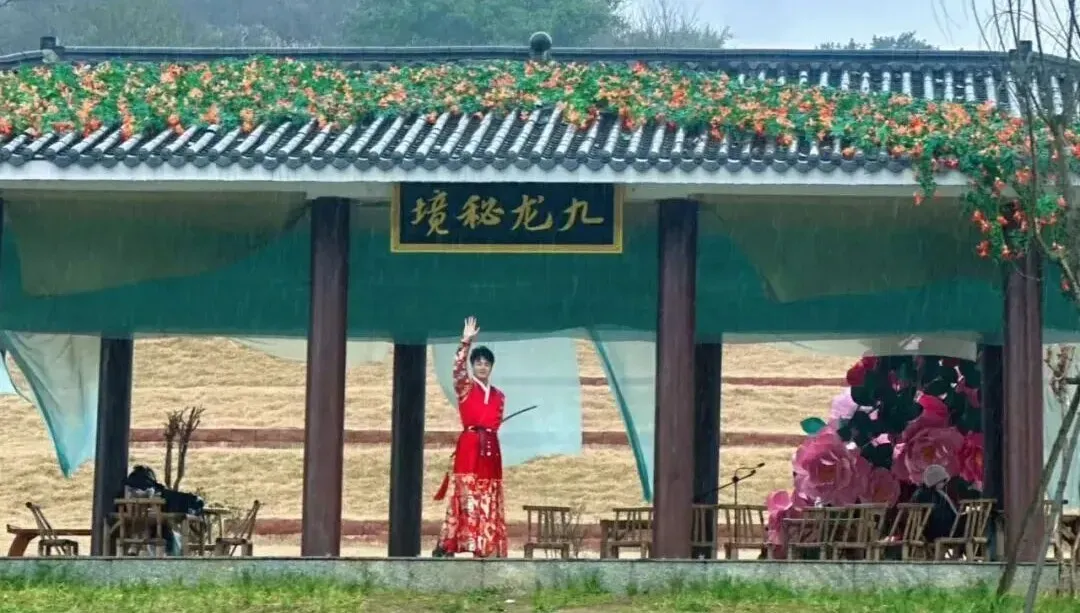 打卡建议: 穿汉服出片率200%!记得带上你的姐妹,一起占领短视频封面。每个周末,九龙水寨还有精彩演出,中国武术、剑舞等表演精彩纷呈,还有送花郎、送花女随机出没。