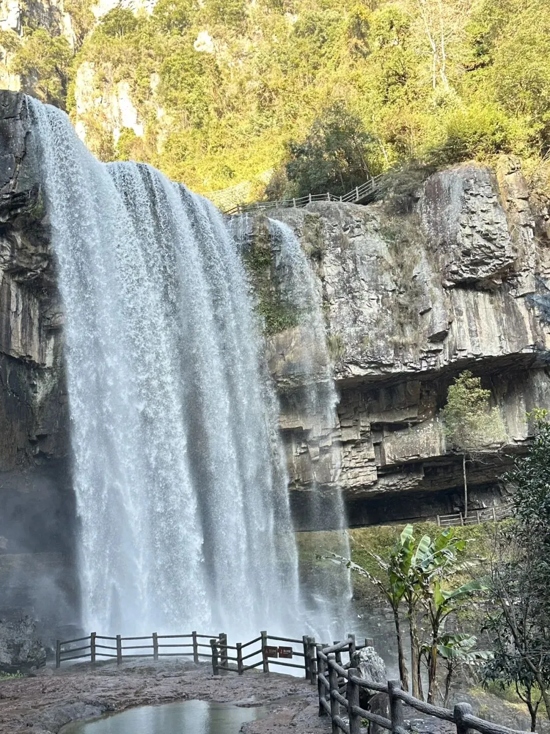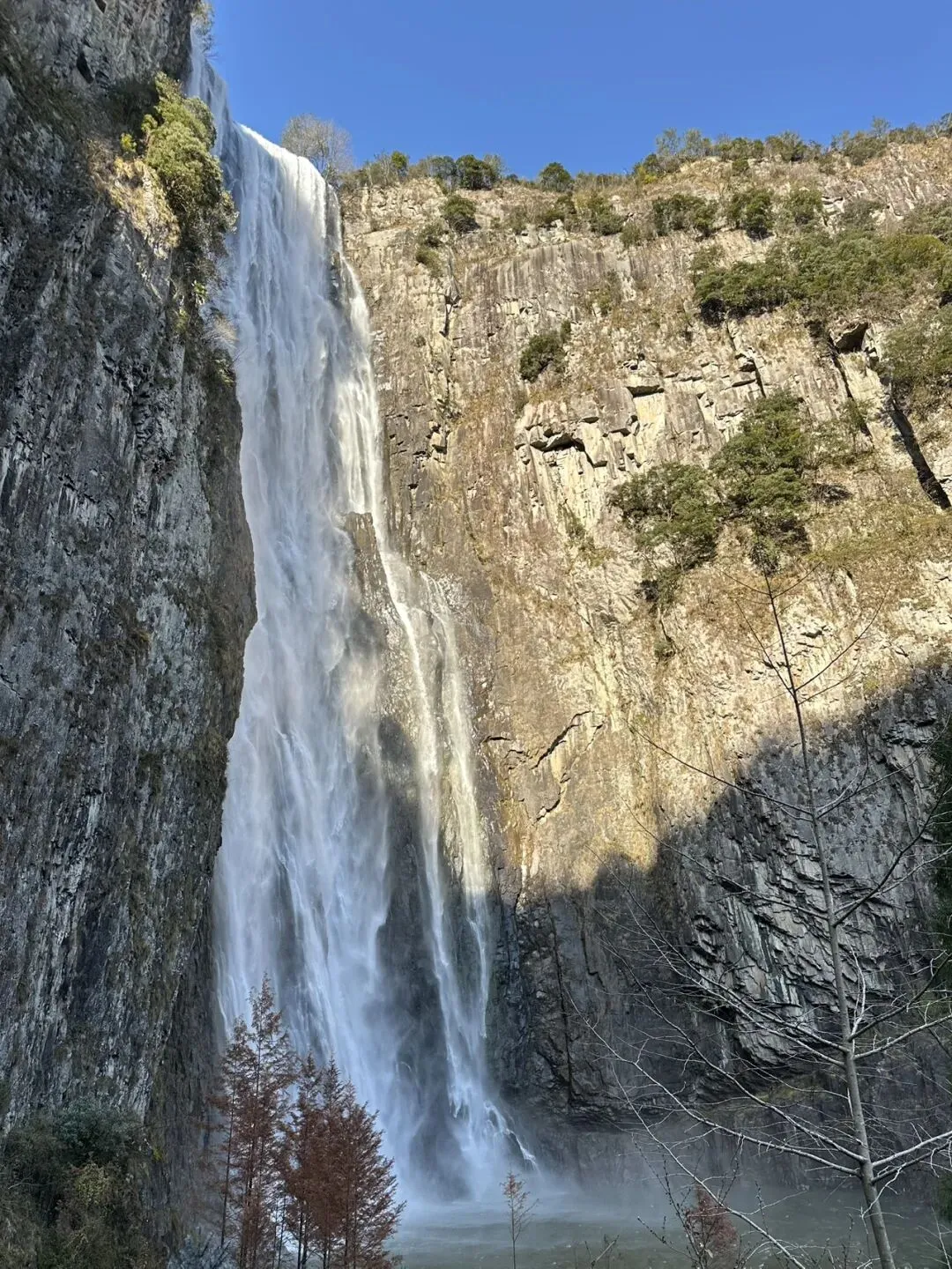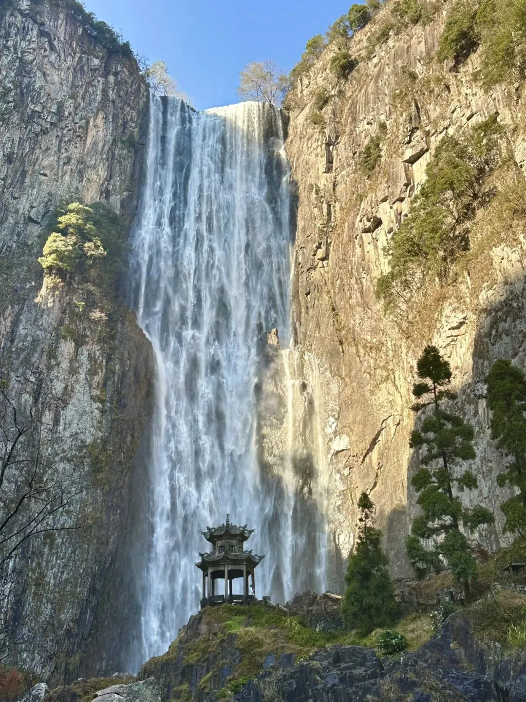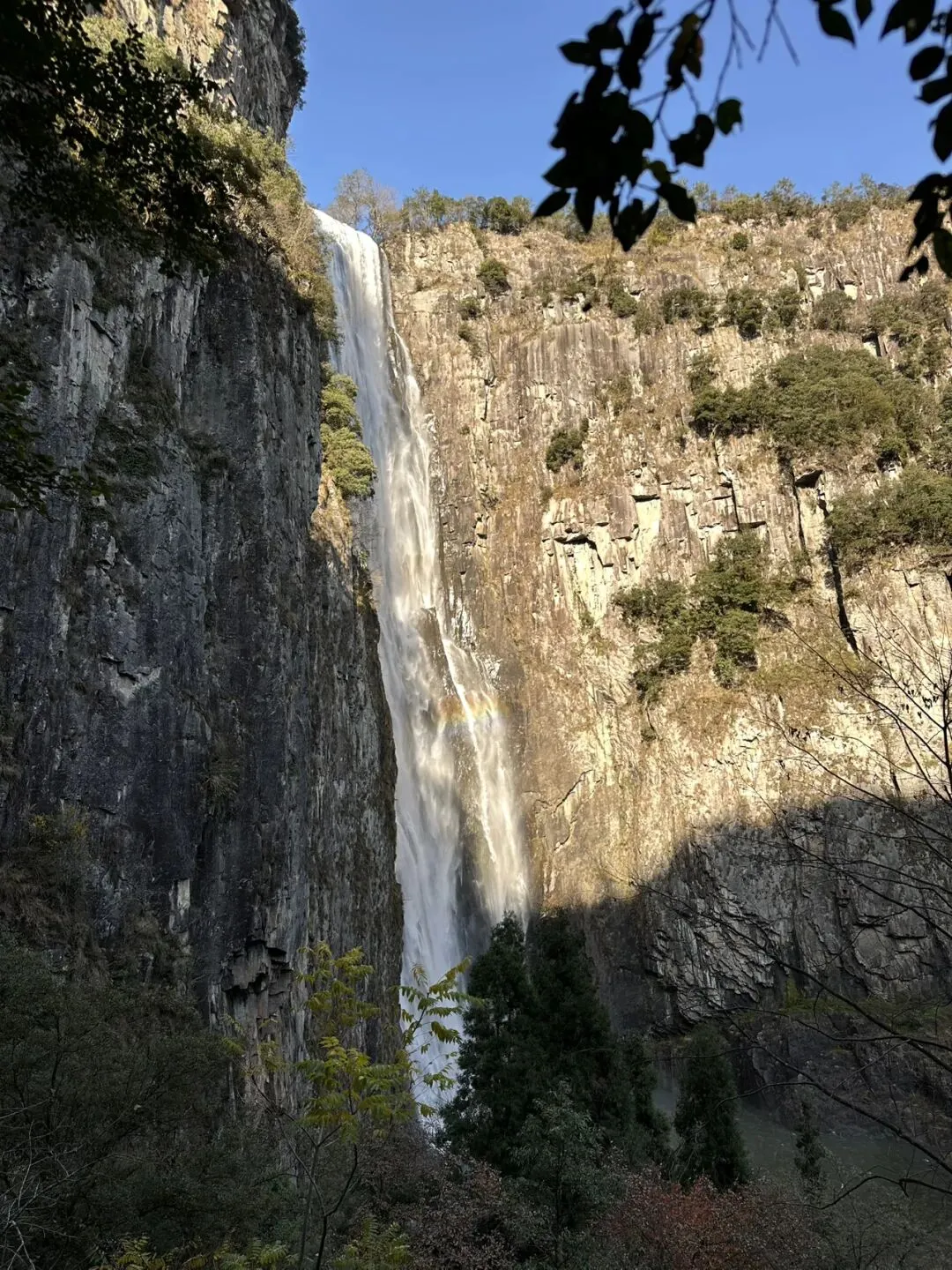 百丈一漈高207米,宽30余米,2013年9月被上海大世界吉尼斯总部认证为“中国单体落差最高的瀑布”,同时入选“中国十大名瀑”。这次运气不错,遇见了绚丽的彩虹。