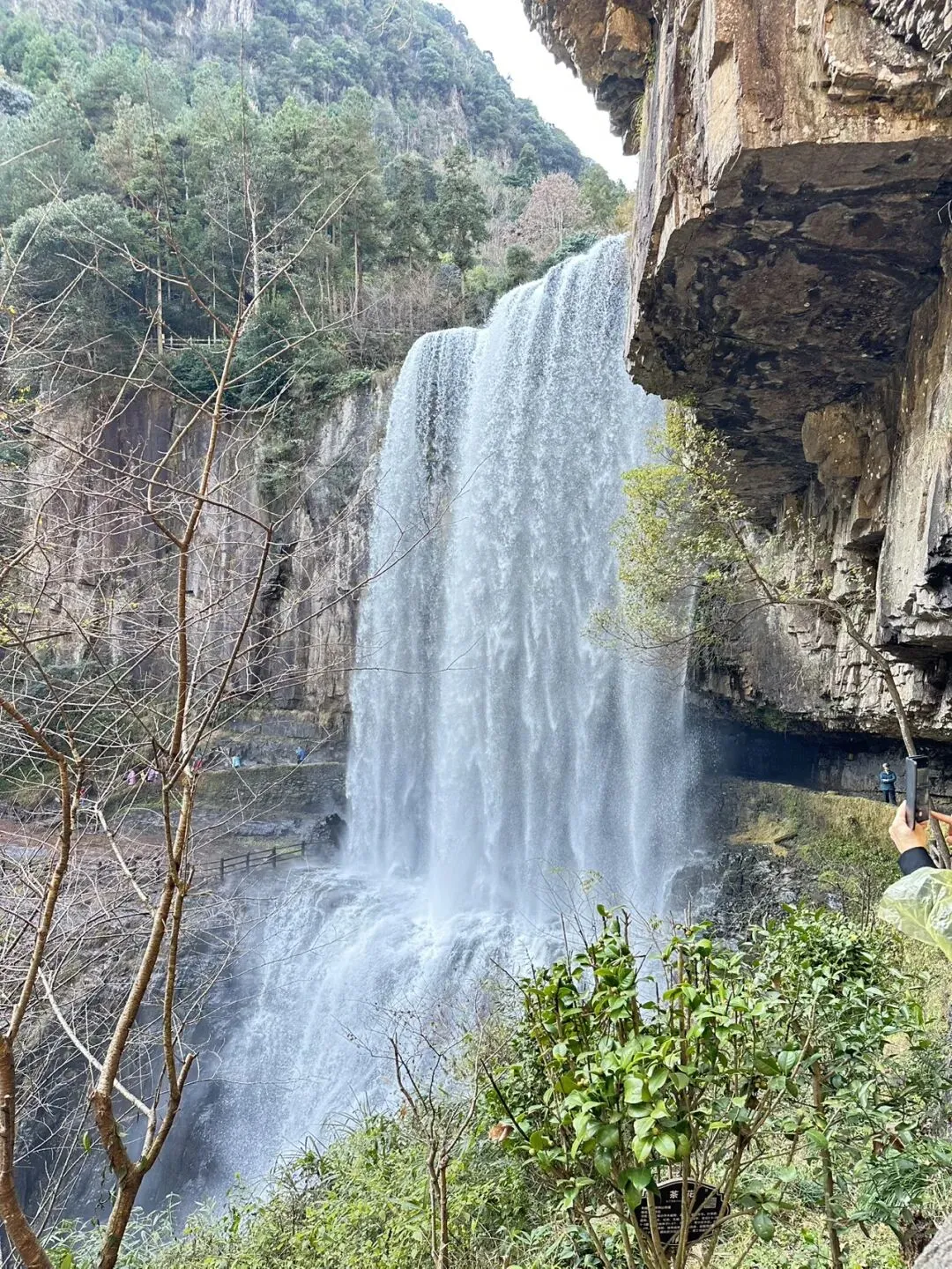 百丈二漈高68米,瀑后有天然岩廊形成水帘洞,穿行其间如入仙境——当然,免不了被瀑布淋了个透心凉。