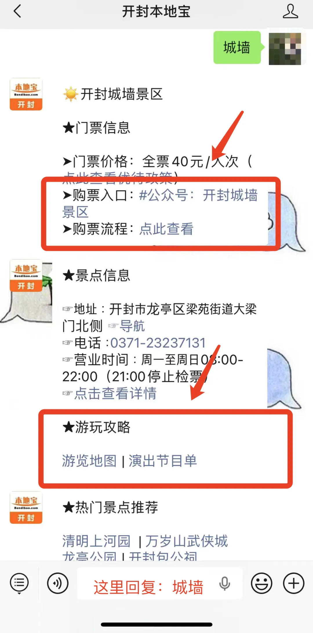 🌟小编提醒:长按识别下方二维码关注【开封本地宝】,在聊天对话框回复【城墙】,即可获取开封城墙景区购票、游玩攻略。