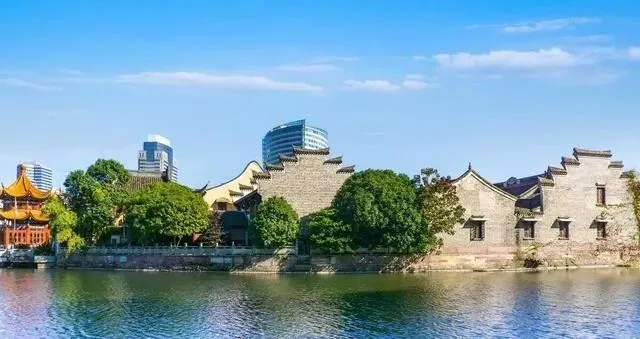 隔壁就是月湖 , 走路就到。 湖不大 , 胜在安静 , 岸边找个位子坐下来喝杯茶 , 看人在湖上划船 , 整个人会松下来。 宁波人的闲适 , 在这儿全感受到了。