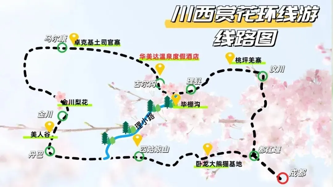 三月,从成都开往古尔沟途中便能一路沉浸粉色花海
