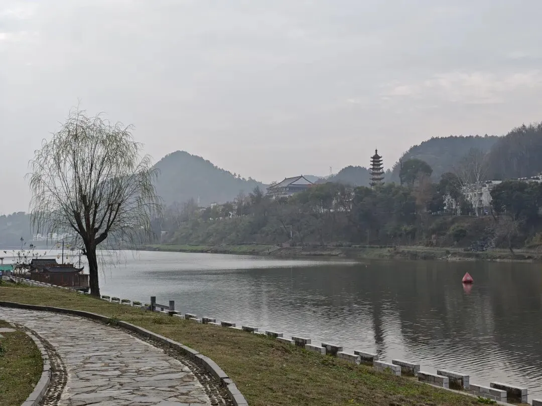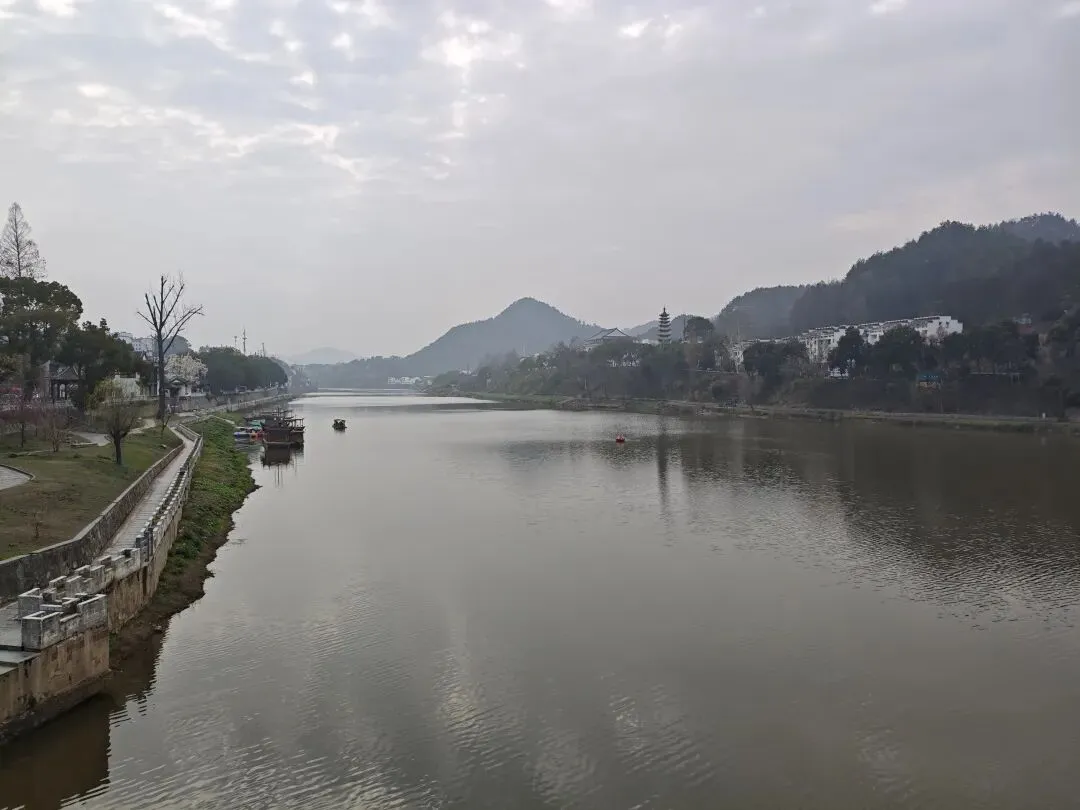 之所以没选择去宏村、西递这些著名景点,原因无他,徽州古城免费。何况这里同样也是5A景区!5A景区我是见一个玩一个,尤其是免费的,不能错过! 导航到徽州古城停车场,准备下车后直接去古城里面玩,谁知道在古城外面经过一座大桥的时候发现,新安江两边风景如画!