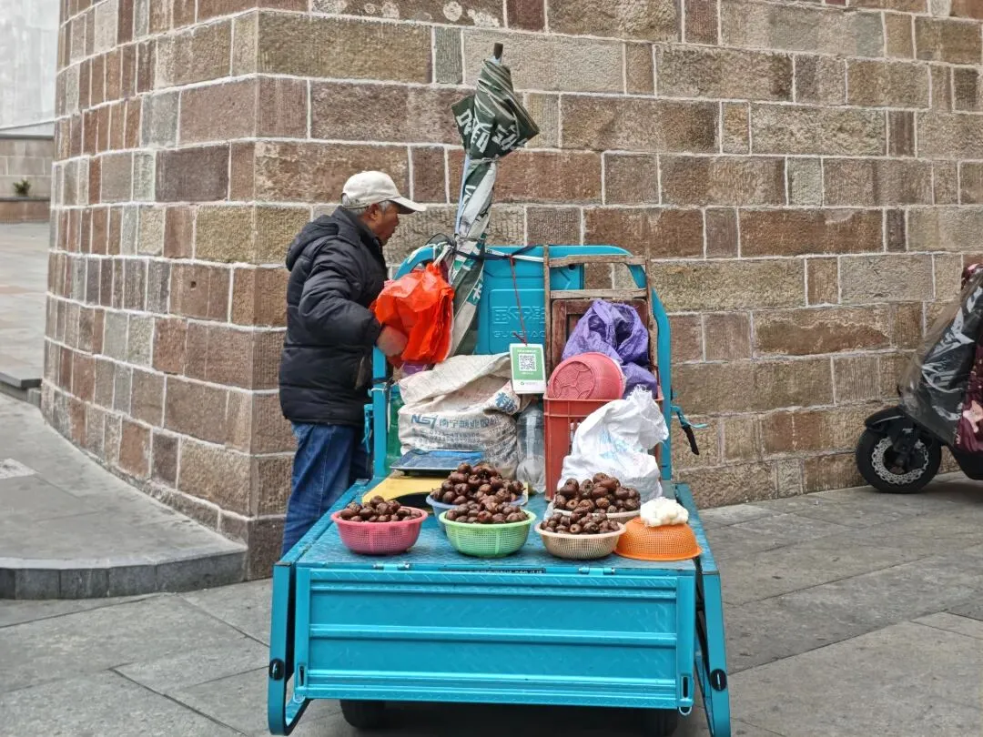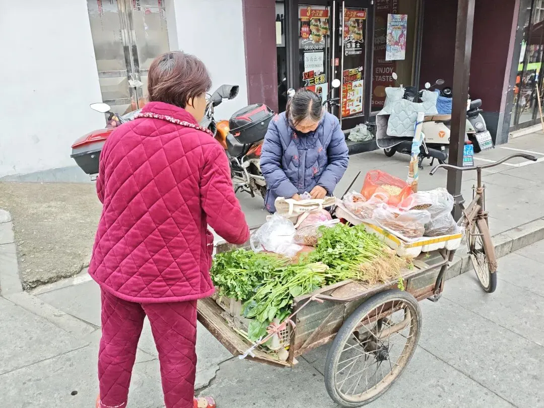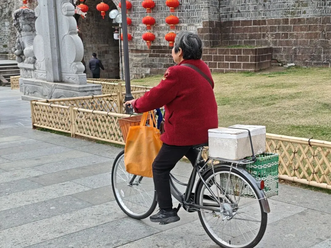 阿姨骑着自行车穿梭在古城,好像在叫卖着什么,我给忘了。