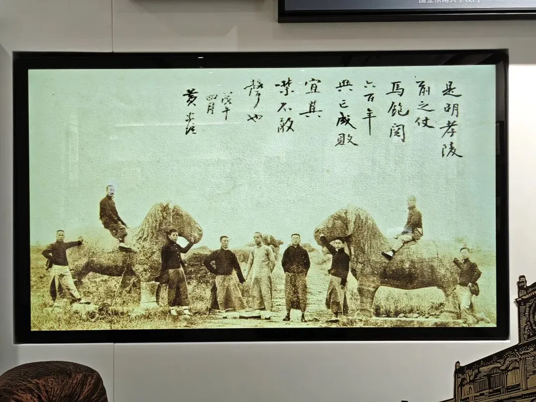 这张照片有点意思,明孝陵前面的石像路,我上学的时候也在这里拍过,不过没骑上去,感觉先辈们比我们还会玩。