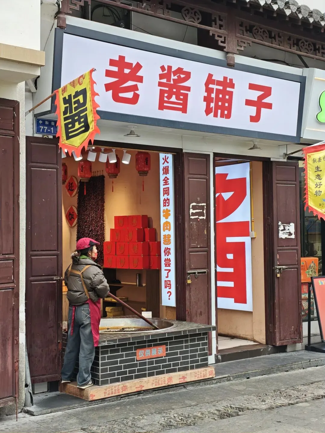 牛肉酱也是徽州特产吗?商家吆喝着让免费品尝一下,不过这个便宜咱没占,别的尝尝还可以,这个酱,空口怎么吃……