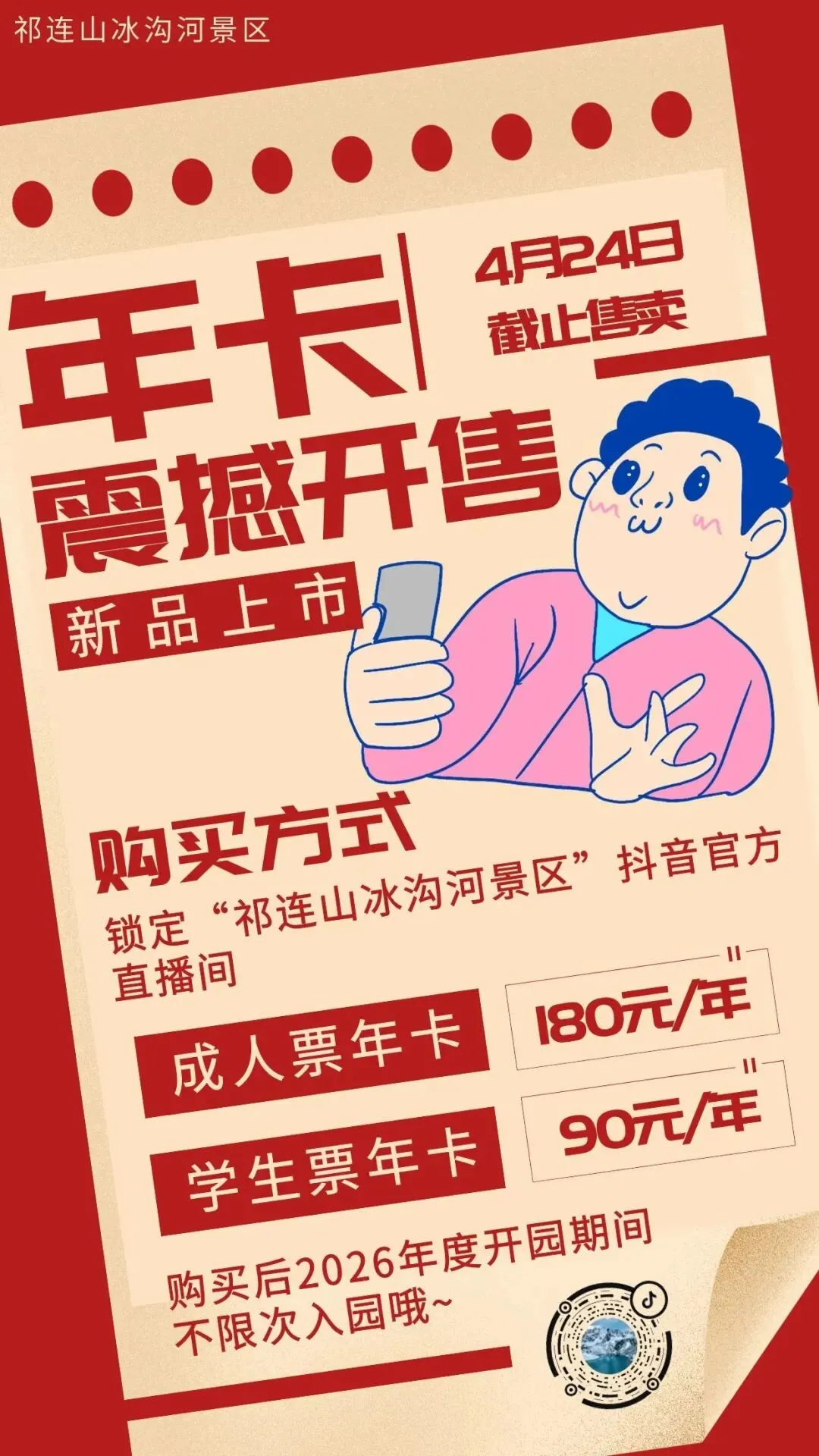 重磅福利来袭,畅玩冰沟河的绝佳机会来啦!祁连山冰沟河景区2026年卡正式开售,无需反复购票,一键解锁全年游玩特权,轻松打卡祁连山四季绝美风光,性价比拉满,限量发售手慢无,赶紧抓住这份出游福利!