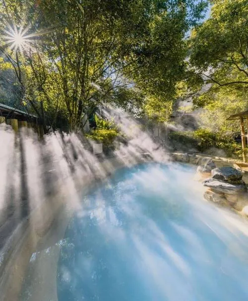 你沿着栈道往下走,会看到瀑布、温泉、溪流,这些元素组合在一起,不是刻意设计的景观,是大自然本来的样子,樱花谷的开发程度不高,游客也不多,这反而让这个地方保持了一种**"我不需要讨好谁"的野劲儿**。