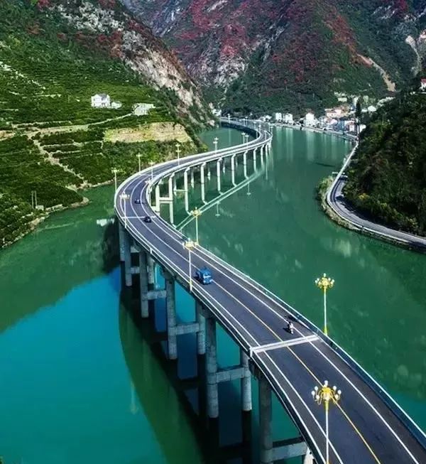 为避免开山毁林,公路有4.4公里是建在峡谷溪流中的,故得名“水上公路”。