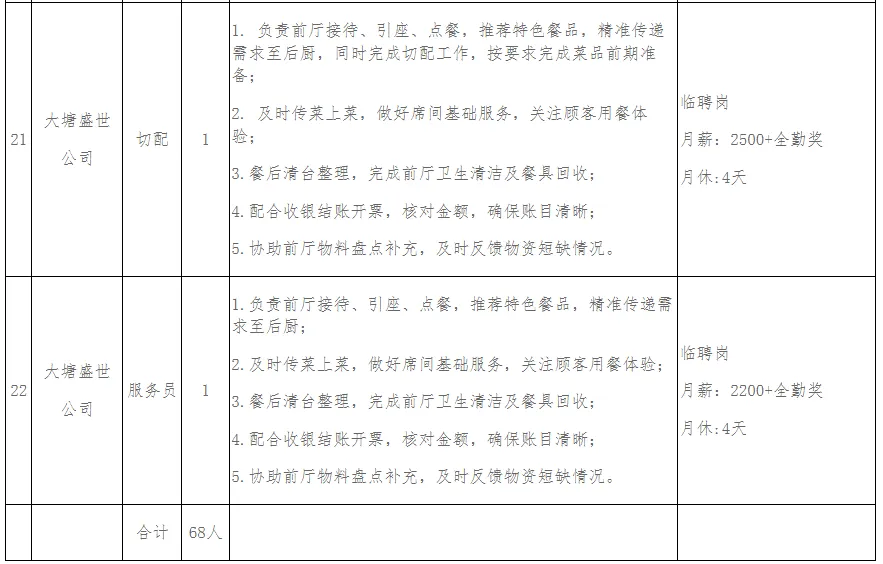 为了更好的适应公司的发展需要,满足公司的人才需求,提升公司的服务水平,加快公司的发展进程,大塘文旅公司向社会公开招聘急需人员若干名。