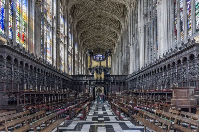 国王学院是剑桥大学 31 个学院之一,建立之初就追求宏伟壮观的建筑,而其建筑群中著名的当属国王学院礼拜堂,它耸入云霄的尖塔和哈里弘的哥特建筑风格已成为整个剑桥市的标志和荣耀。