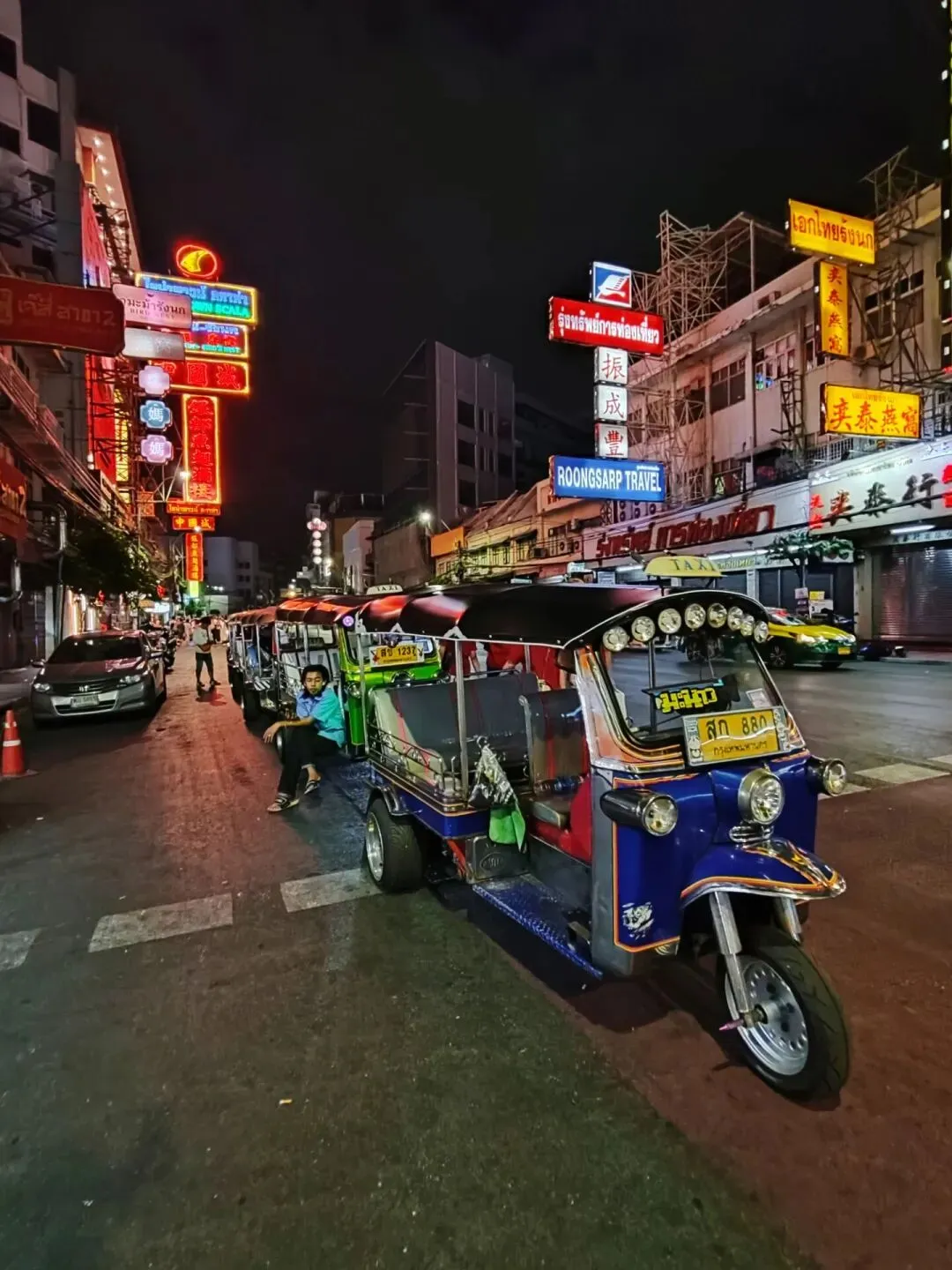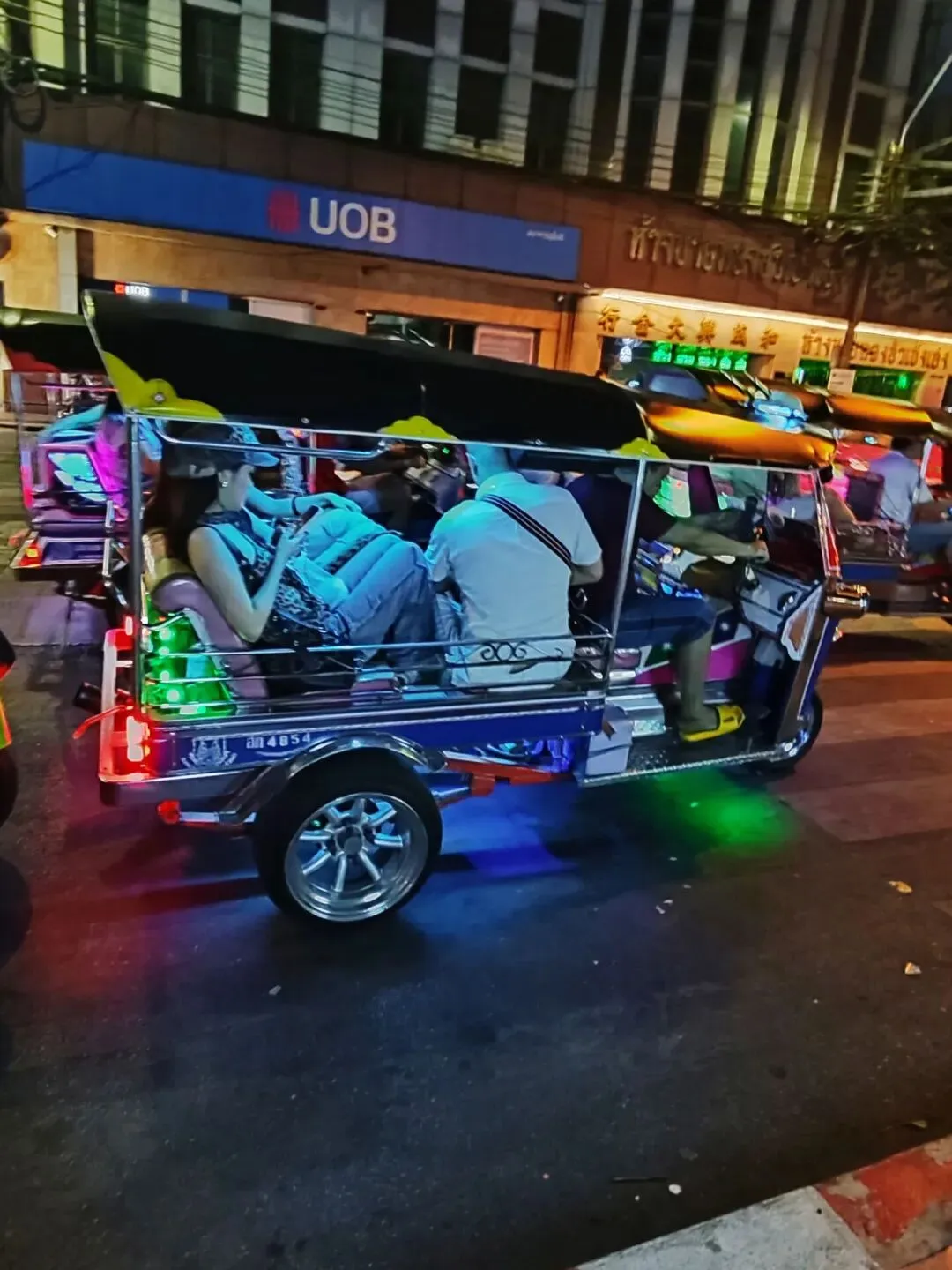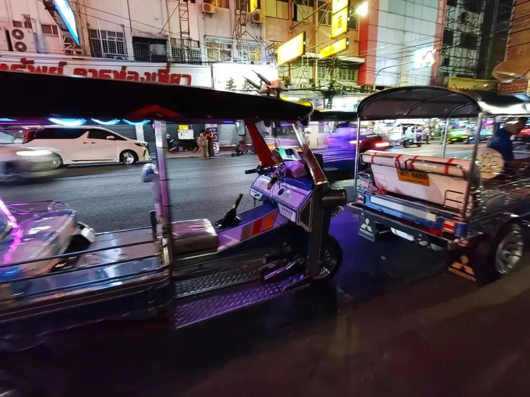 乘坐的时候一定要注意,这种车没有计价器,也不同于国内常见的载客三轮车,作为游览观光车价格会比打车略贵,并且座位最多只能坐三人。坐之前一定要谈好价格,并且要学会砍价。我们晚上坐了大概三公里去唐人街,司机刚开口要400泰铢,最后砍到了150泰铢。一般3km以内,白天的话就是50至100泰铢,如果是比较热的旅游景点,或者说是夜间乘坐,价格会上浮50至100泰铢。距离太远的话,不建议乘坐,毕竟不是很安全,车上没有安全带也没有头盔。坐上车之后,你会发现手就不由自主地死死抓在左右两边的把手上了。