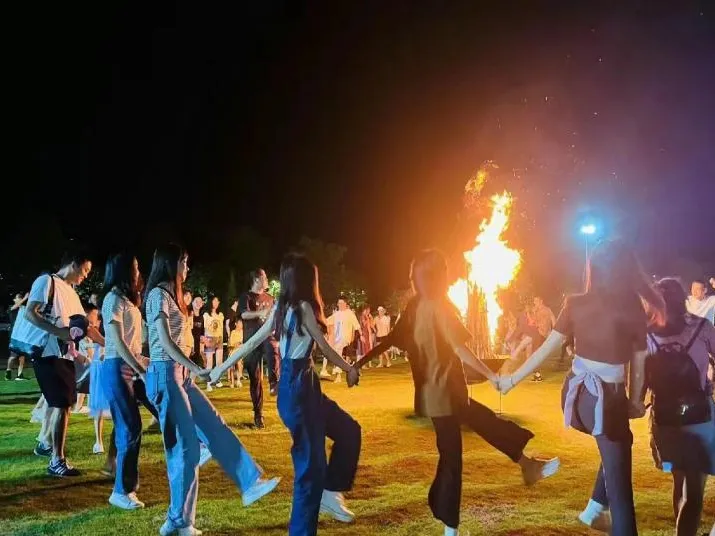 篝火晚会、自助烧烤火热开场