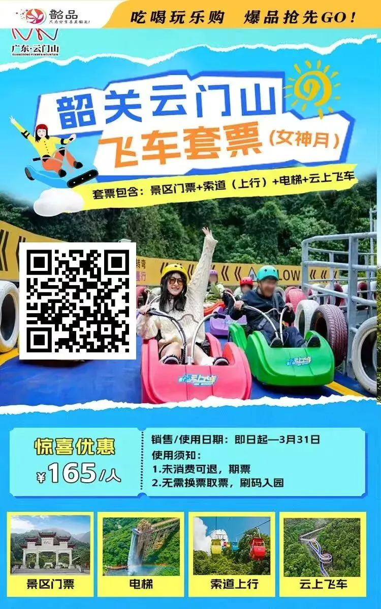 优惠:2026年3月1日—3月29日,景区门票原价80元/人,韶关市民专属30元/人;飞车套票原价200元/人,优惠价165元/人(不限群体)。