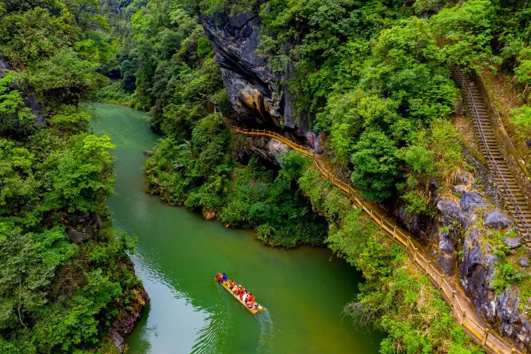 在仙门奇峡,三月的风还带着丝丝凉意,乘一叶竹筏漂在翡翠般的湖上,两岸赤壁缓缓后退,耳边只有船桨划破水面的轻响和山谷间的鸟鸣。你会觉得整个世界都慢了下来,只想闭上眼睛,做一日山水间的逍遥客。