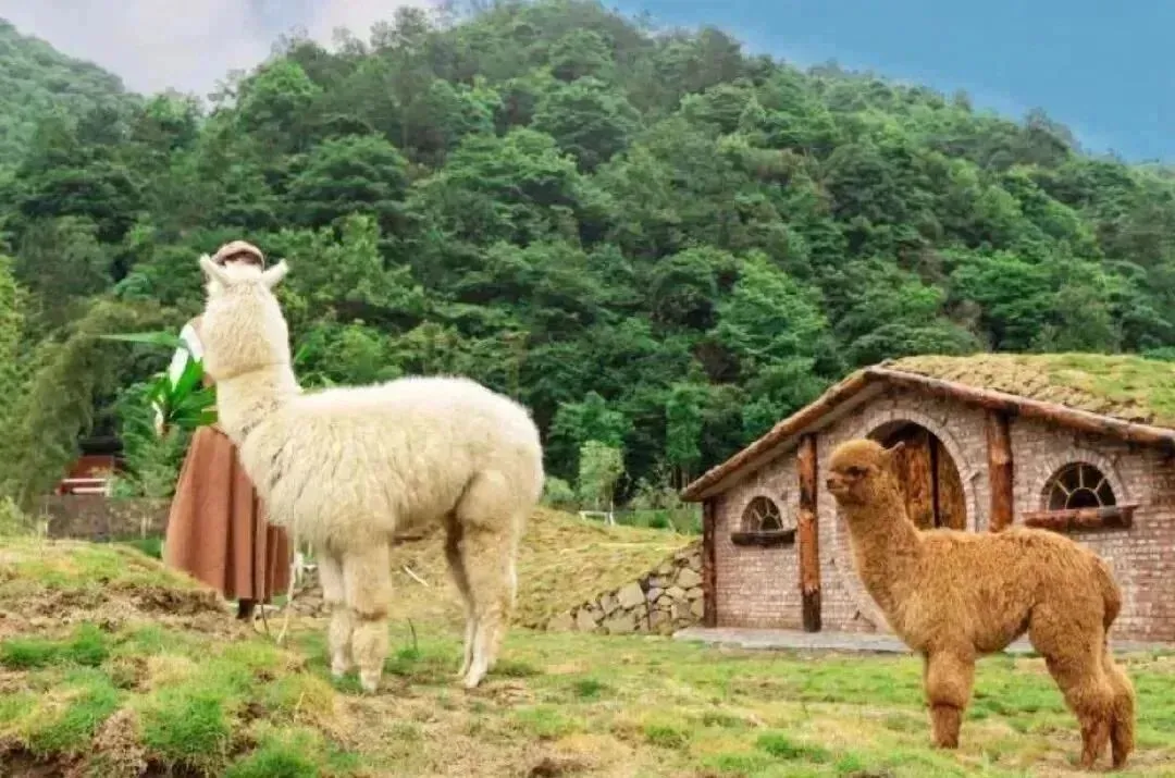 往景区深处走还藏有电影镜头里的霍比特小屋!远方还有羊驼在咩咩谷悠然踱步,画面超级惬意!