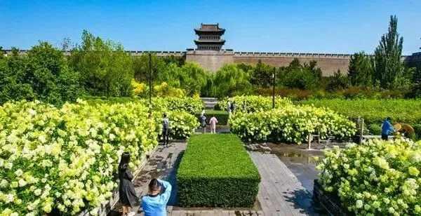 大同古城南城墙绣球花绽放