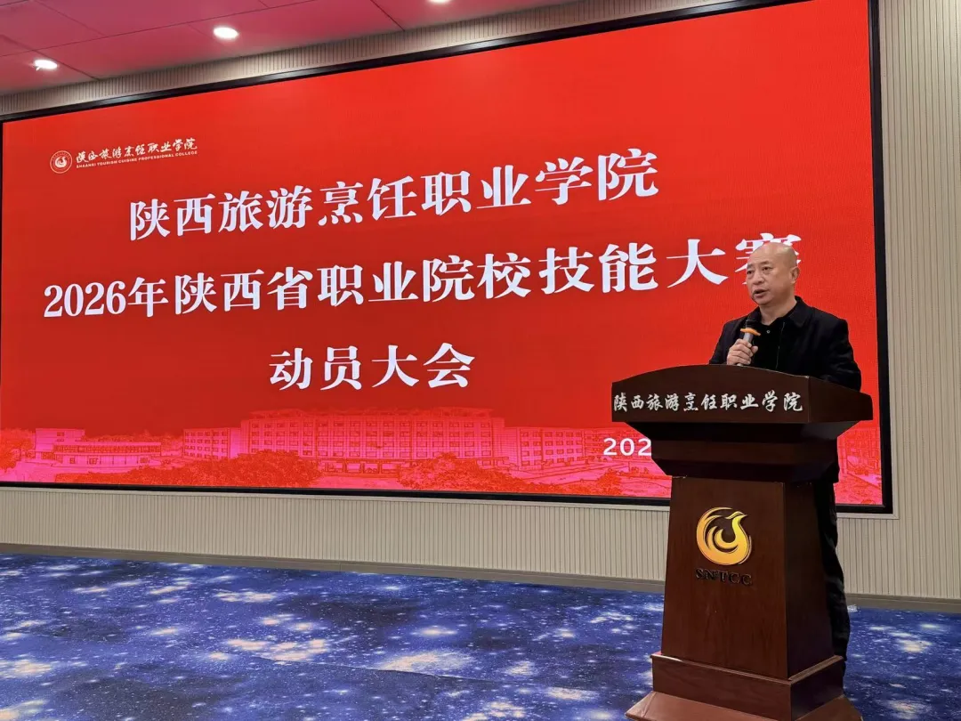 本次动员大会的召开,标志着陕西旅游烹饪职业学院备战2026年世界职业院校技能大赛陕西省选拔赛的号角正式吹响,全院上下正以昂扬的斗志迎接挑战,为加速陕西省教育强省建设贡献职教力量。