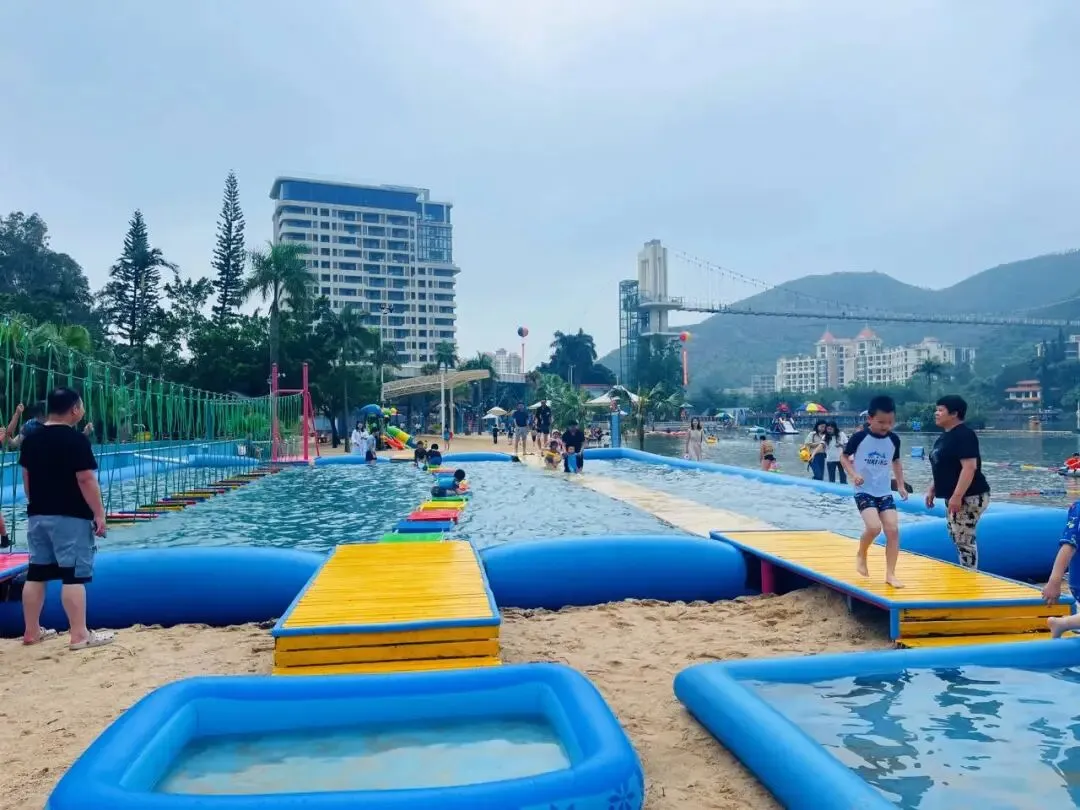 亲子智趣闯关、百米网红泳道、网红气模滑梯、沙滩冲浪、加特林水枪激情狂欢、泼水对对碰、水上蹦迪
