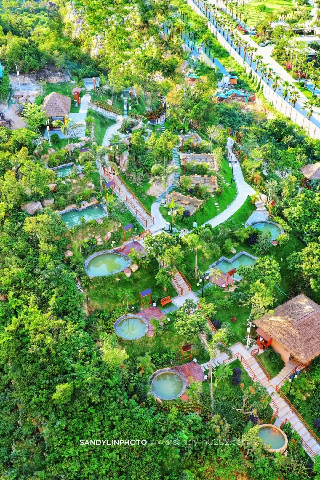 依山而建的28个各异的半山温泉池