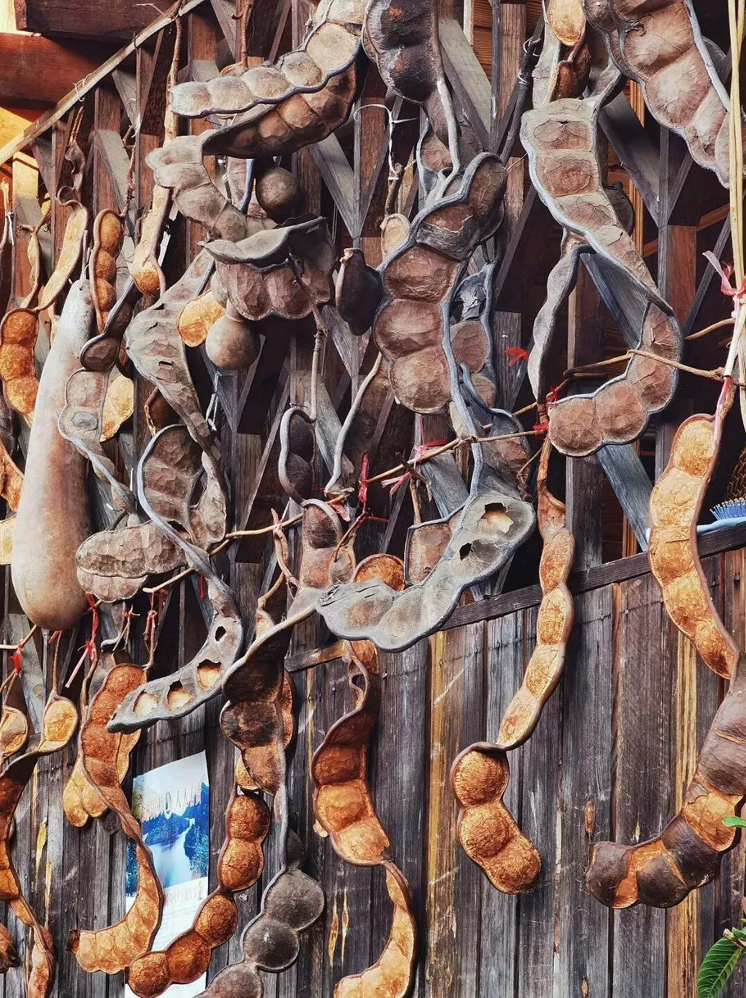 当地人挂它,说法有很多:有人说挂着好看,能当软装,还能根据豆荚的弯曲角度搭配窗框,颇有设计感;也有人说它寓意多子多福,挂一串,日子能串起来不散;还有人说它能挡煞、挡灰尘,是家里的“平安符”……