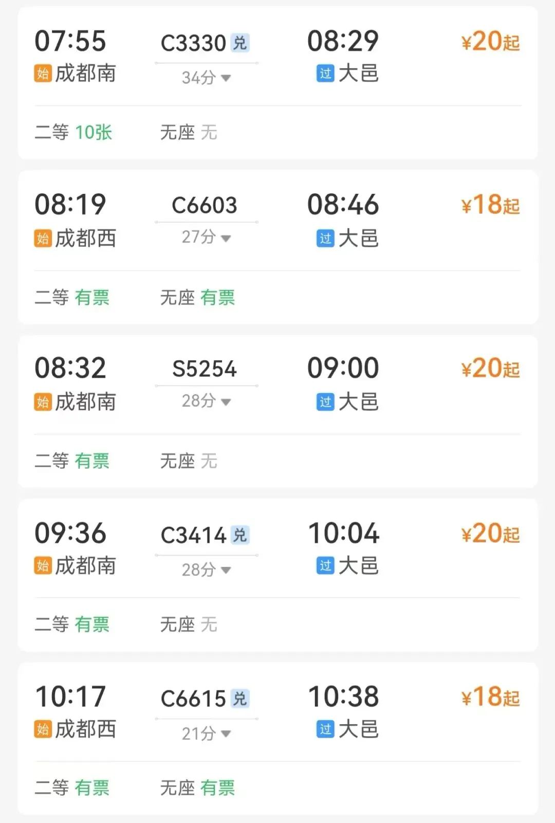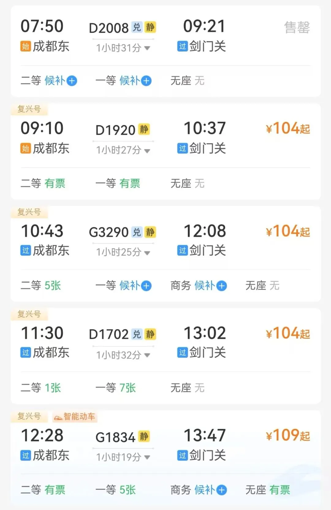 成都东站—剑门关站日均开行列车10趟