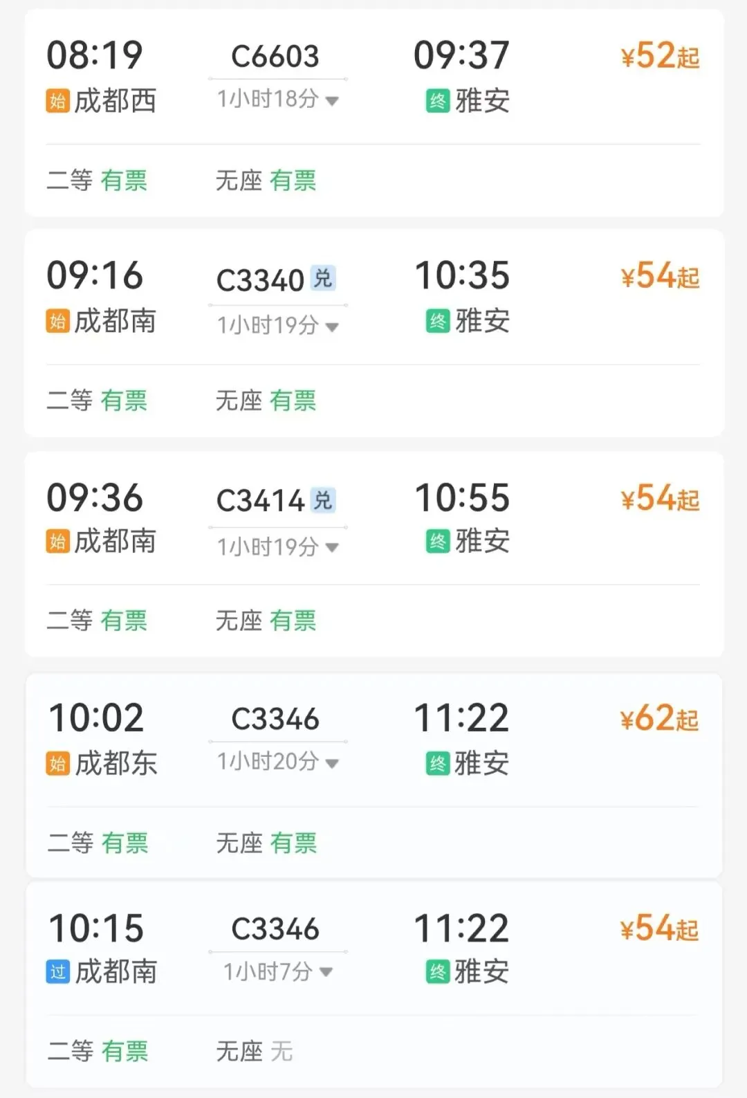 成都东站、南站、西站到雅安